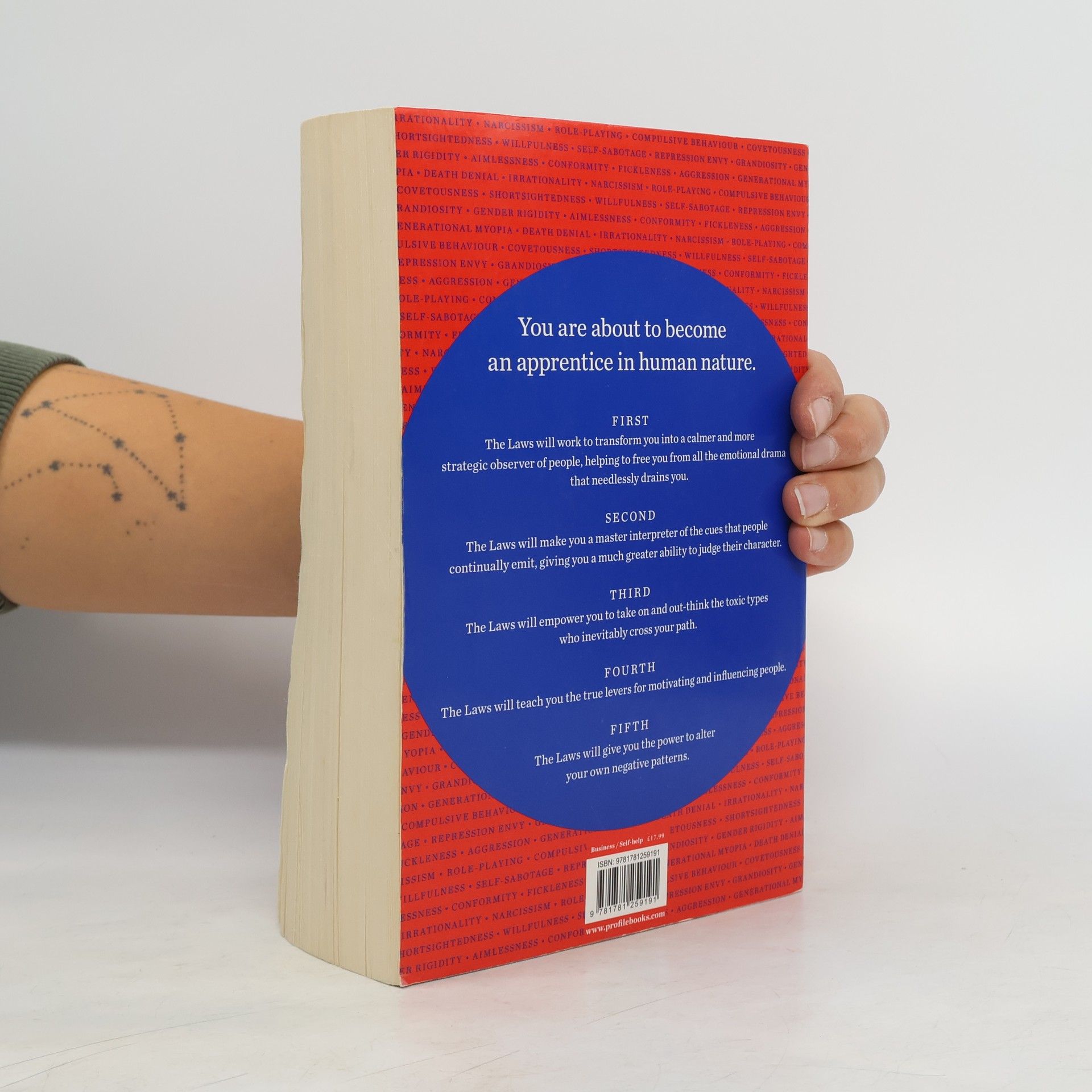 You are about to become an apprentice in human nature. First. The Laws will work to transform you into a calmer and more strategic observer of people, helping to free you from all the emotional drama that needlessly drains you. Second. The Laws will make you a master interpreter of the cues that people continually emit, giving you a much greater ability to judge their character. Third. The Laws will empower you to take on and out-think the toxic types who inevitably cross your path. Fourth. The Laws will teach you the true levers for motivating and influencing people. Fifth. The Laws will give you the power to alter your own negative patterns.