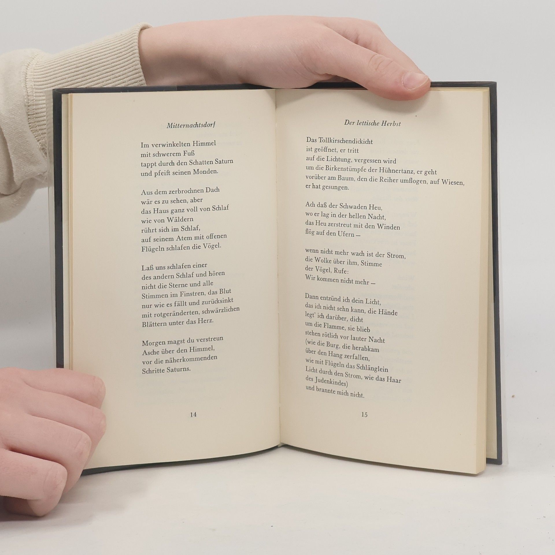 Dieser dritte Lyrikband Johannes Bobrowskis sammelt Gedichte aus den Jahren 1956—1965; die meisten entstanden 1961—1964, darunter auch die, denen die ›Gruppe 47‹ ihren Preis verlieh.Die sarmatische Umwelt, die die früheren Gedichte prägte, taucht in den hier vereinigten nur noch vereinzelt auf. »In die Sinne aber gebunden die Finsternis« wollen sie »das Wirkliche«: Wasser-stimmen und Vogelruf, Türlicht, Schulterschatten, Fingerschrift. Sie »trauen der Vergeßlichen Sprache«, soweit sie teilnimmt am Menschen:AbgehetztMit dem müden MundAuf dem endlosen WegZum Hause des Nachbarn