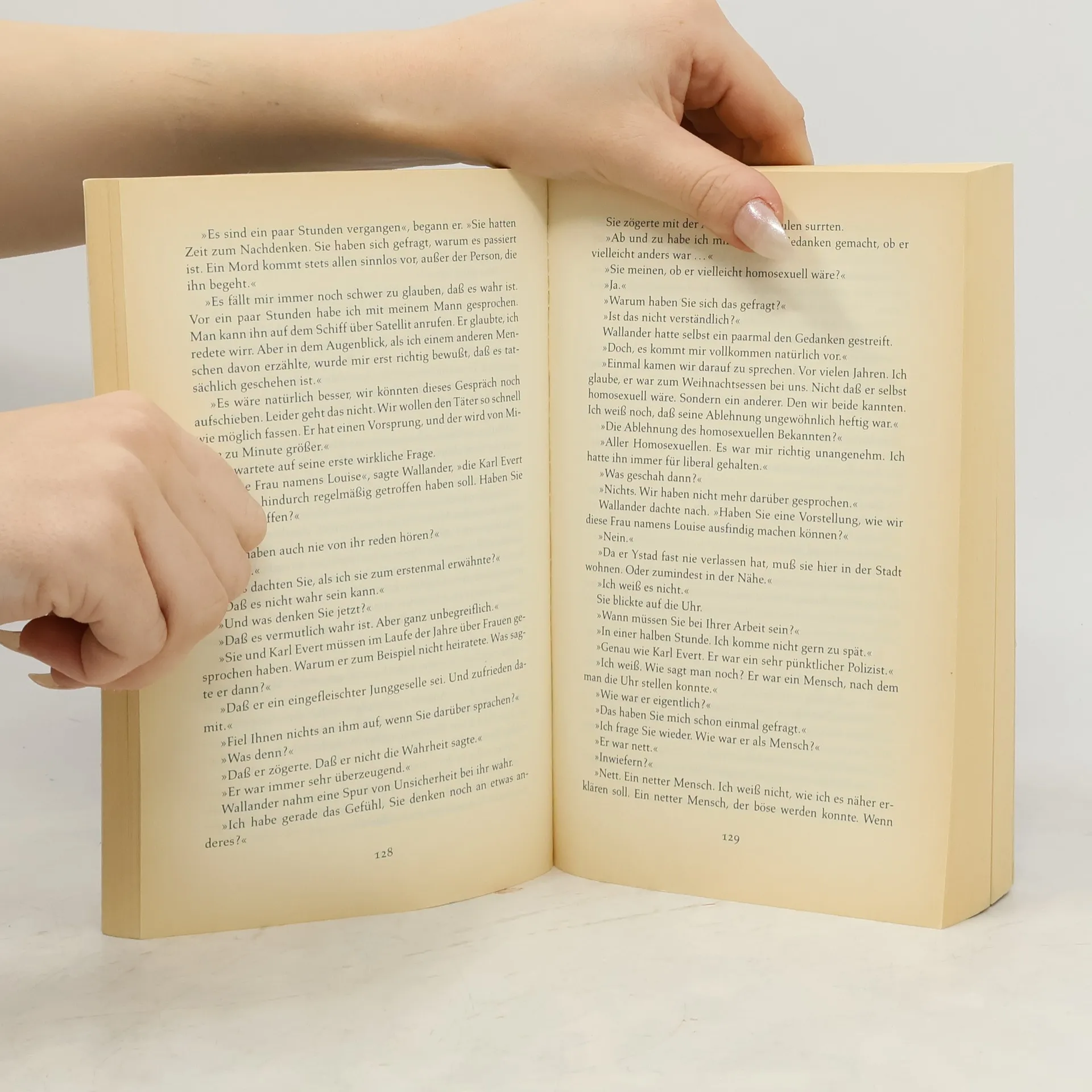 Drei Jugendliche werden ermordet; auch ein Polizist muss sterben ... Wallanders siebter Fall. Es sollte ein harmloses Rollenspiel werden, am 21. Juni 1996, ein kleines Verkleidungsritual in der mythenumrankten Mittsommernacht. Doch Wanderer schaudern, als sie Wochen später in einem Naturschutzgebiet auf die drei Jugendlichen stoßen, deren leblose Körper noch mit Miedern, Hemdkrausen und Perücken herausgeputzt sind. Bald ist es grausige Gewißheit: Sie wurden Opfer eines Verbrechens. Fast zur gleichen Zeit wird Kommissar Wallanders geschätzter Kollege Svedberg mit zerschossenem Gesicht in seiner Wohnung aufgefunden. Gibt es einen Zusammenhang zwischen den Fällen? Kurt Wallander stürzt sich verzweifelt in die Ermittlungen. Dabei stellt er zu seinem Entsetzen fest, wie wenig er über seinen Kollegen weiß, mit dem er jahrelang zusammengearbeitet hat ...