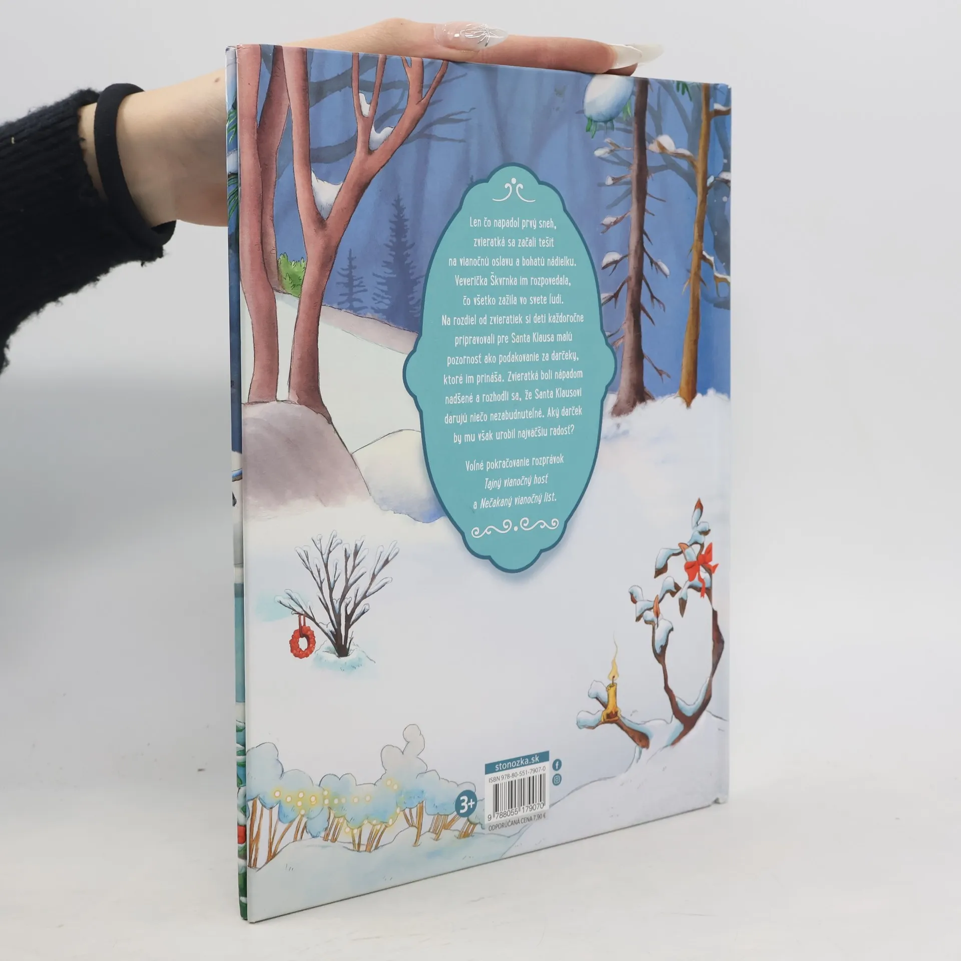 Kúzelný vianočný príbeh o zvieratkách z lesa.Len čo napadol prvý sneh, zvieratká sa začali tešiť na vianočnú oslavu a bohatú nádielku. Veverička Škvrnka im rozpovedala, čo všetko zažila vo svete ľudí. Na rozdiel od zvieratiek si deti každoročne pripravovali pre Santa Klausa malú pozornosť ako poďakovanie za darčeky, ktoré im prináša. Zvieratká boli nápadom nadšené a rozhodli sa, že Santa Klausovi darujú niečo nezabudnuteľné. Niečo, čo ho bude ešte dlho hriať pri srdci. Aký darček by mu však urobil najväčšiu radosť?