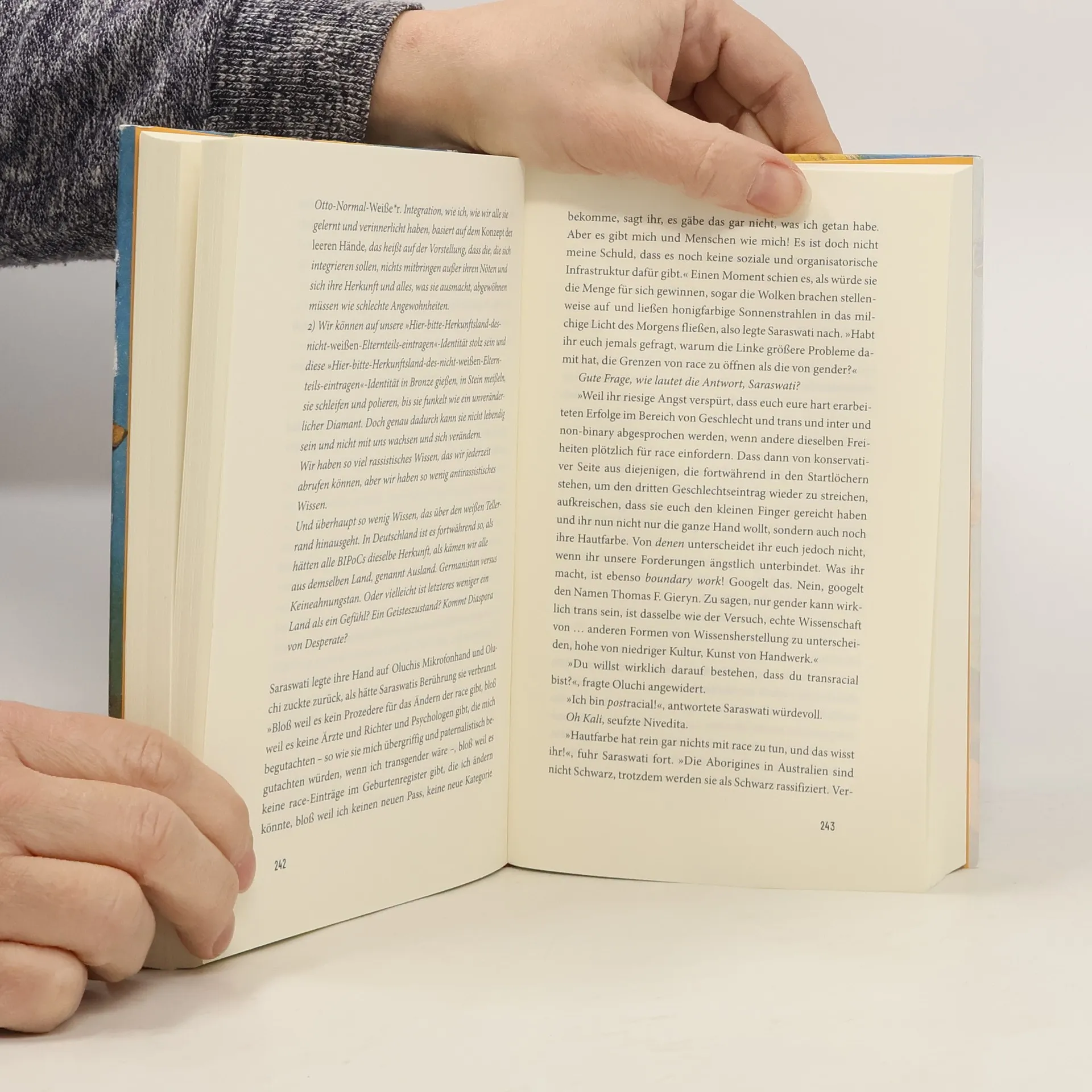 „Was für eine gnadenlos witzige Identitätssuche, die nichts und niemanden schont. Man ist nach der Lektüre nicht bloß schlauer – sondern auch garantiert besser gelaunt.“ (Alina Bronsky) - Auf der Shortlist des Deutschen Buchpreises 2021 Was für ein Skandal: Prof. Dr. Saraswati ist WEISS! Schlimmer geht es nicht. Denn die Professorin für Postcolonial Studies in Düsseldorf war eben noch die Übergöttin aller Debatten über Identität – und beschrieb sich als Person of Colour. Als würden Sally Rooney, Beyoncé und Frantz Fanon zusammen Sex Education gucken, beginnt damit eine Jagd nach „echter“ Zugehörigkeit. Während das Netz Saraswati hetzt und Demos ihre Entlassung fordern, stellt ihre Studentin Nivedita ihr intimste Fragen. Mithu Sanyal schreibt mit beglückender Selbstironie und befreiendem Wissen. Den Schleudergang dieses Romans verlässt niemand, wie er*sie ihn betrat.