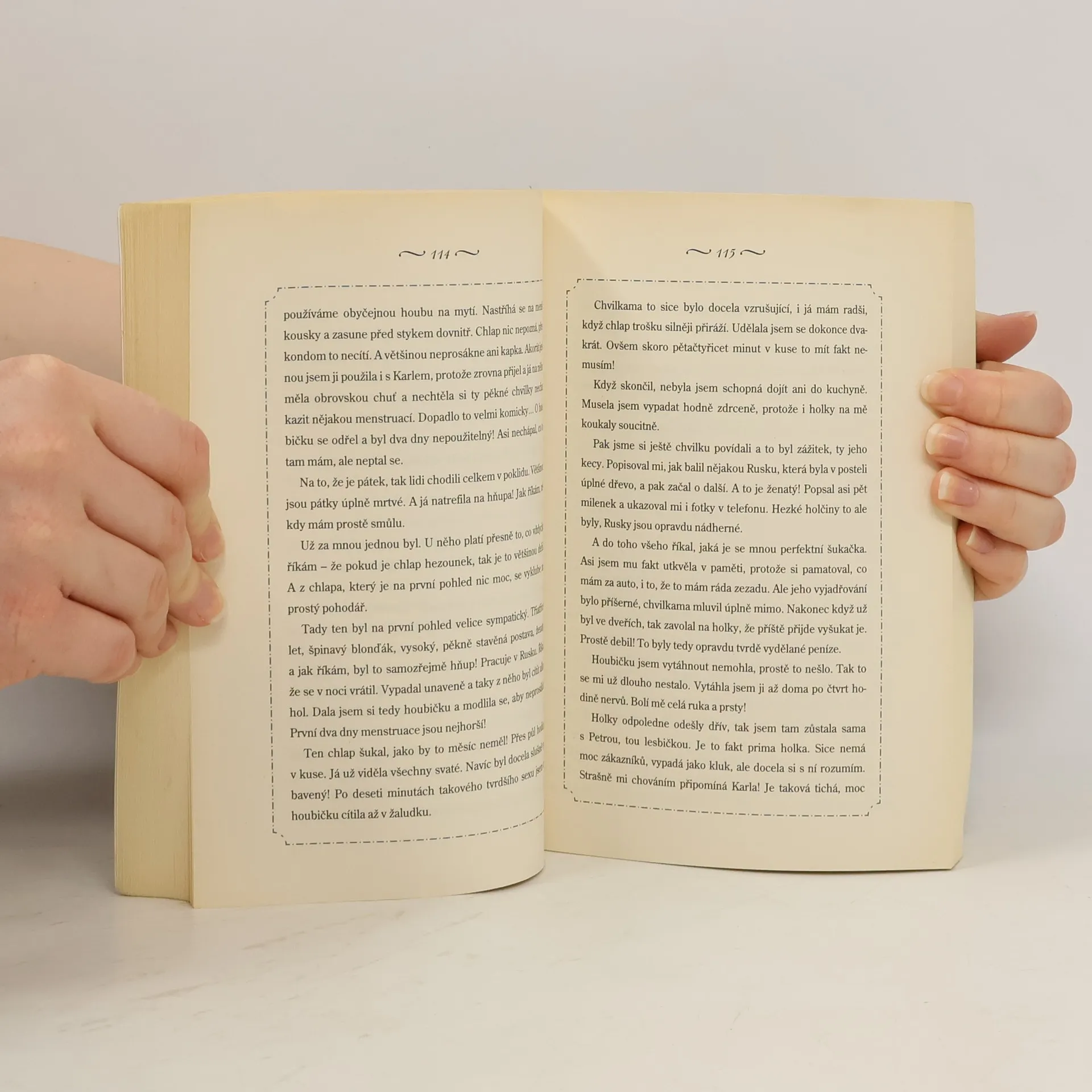 Životní příběh prostitutky, která přes všechny rány osudu zůstala silnou, vyrovnanou a hrdou ženou. Její nelehký osud, vyprávěný s nadhledem a ironií, sleduje čtenář ve dvou rovinách – pasáže o dětství, dospívání a začátcích její netradiční kariéry se prolínají s deníkovými zápisky ze současnosti, kde otevřeně, přesto decentně popisuje svůj běžný den nejen jako prostitutka a majitelka privátu, ale také jako přítelkyně, matka a žena.