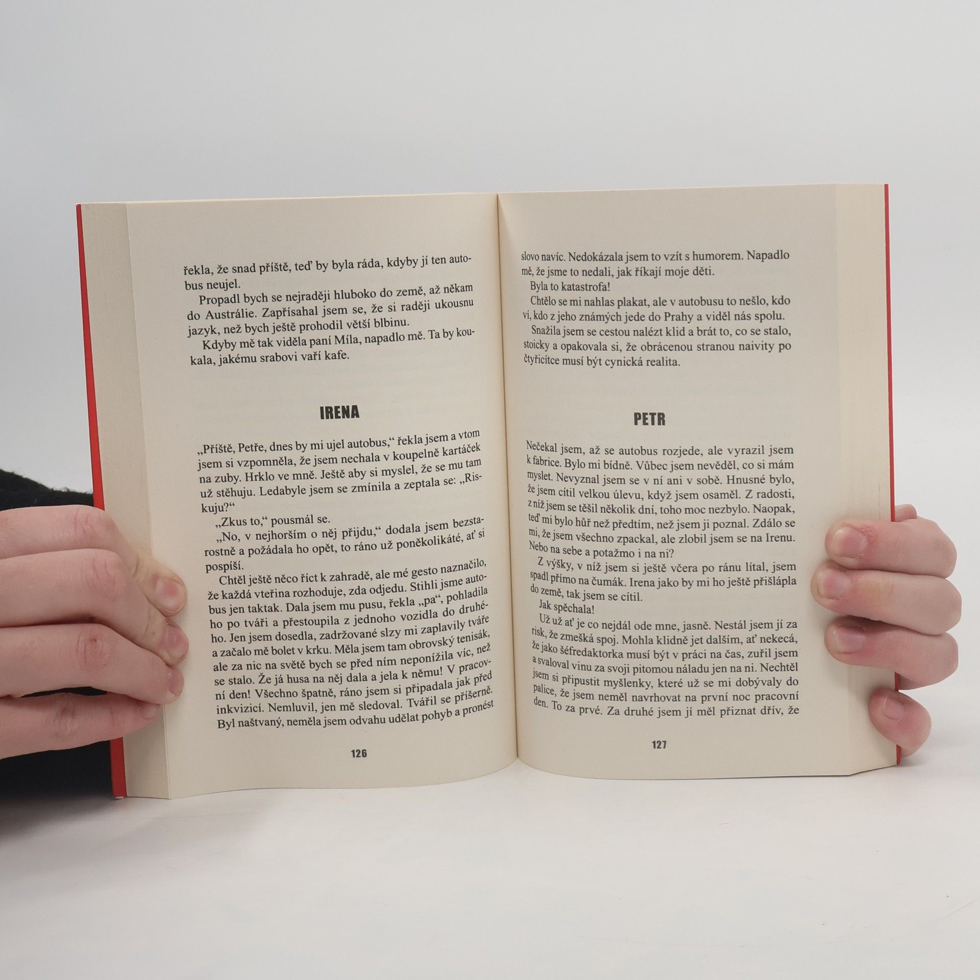 Příběh dvou čtyřicátníků, Ireny a Petra, které zcela nečekaně zasáhne vzájemný cit. Oba jsou velmi zranitelní a zároveň ochotní ještě jednou podstoupit martyrium lásky. Oba úspěšní, jeden pro druhého dostatečně atraktivní… Jak to, že ani tohle nestačí na udržení vztahu?, diví se zakrátko, každý svým osobitým způsobem. Každý ze své pozice je odhodlaný vidět pravdu o tom druhém, ale nikoli o sobě, každý ze svého pohledu popisuje jejich postupné sbližování a odcizování, hlavně však smiřování se s tím, jak jsou jim všechny manažerské schopnosti na nic. Během měsíce a půl prožijí tolik, co jiný pár za celý život. Je to jak na horské dráze a nechybí ani drama, v němž jde o život. Zátěž minulých zkušeností táhne oba ke dnu a málem se na vlnách jejich vztahové epizody neudrží ani jeden z nich. Oba vědí, že nestačí chtít a receptem není ani postel, kde to ti dva jedině zvládají (až záviděníhodně). Na jejich mindráky platí něco zcela jiného a ve společnosti, v níž se pohybují, mnohdy příliš vzácného – otevřenost.