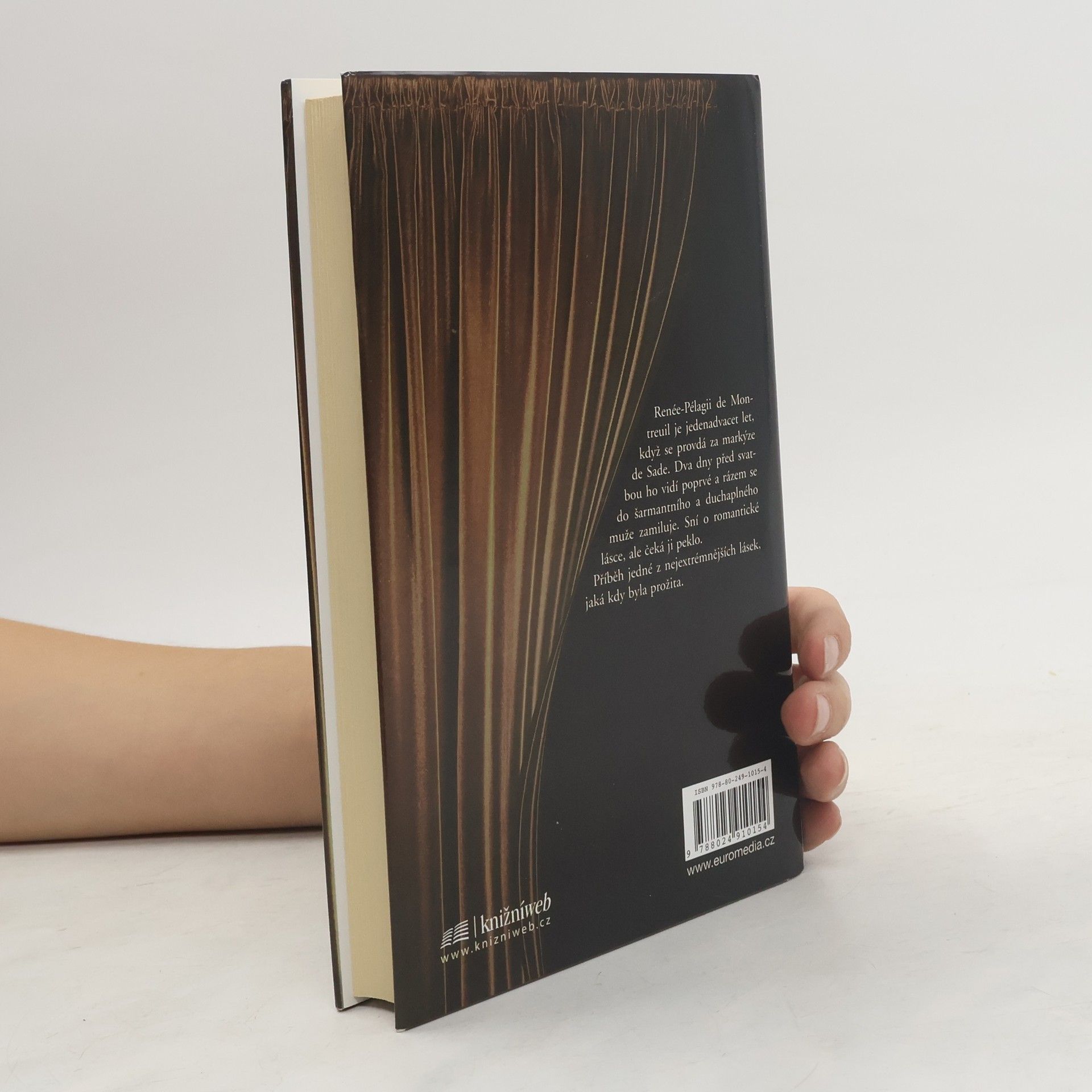 Román jednoho manželství Pařížská opera, rušné slavnosti a nákladná divadelní představení v rodinném venkovském sídle - to všechno spolu s mladistvě arogantním šarmem duchaplného markýze de Sade činí z Renée-Pélagie na začátku jejich manželství šťastnou ženu. Nemá tušení o temných stránkách svého chotě, neví, co si lidé v celém okolí šuškají: je to zvrhlík, zneužívá mladé dívky, je sodomista a rouhač nejhoršího druhu. Teprve po letech, po pronásledování, řadě soudních rozsudků a manželových pobytech ve vězení Renée pochopí, že se její romantické sny nikdy nenaplní, že ji a její rodinu naopak tenhle svazek odsunul na okraj dvorské společnosti. Přesto neochvějně stojí po boku svého chotě. Má s ním tři děti, skrývá ho před úřady, přemlouvá úředníky a po každém skandálu ho opět vezme zpátky. Kdo byla žena, s níž se markýz de Sade oženil? Byla frivolní, naivní, nebo se rovněž stala obětí sexuální posedlosti? A jaký byl on ve světle manželství? Z Bastily, kde psal své šokující knihy, posílal manželce i něžné dopisy. Byl "vyznavač sadismu" vůbec schopen opravdu milovat?
