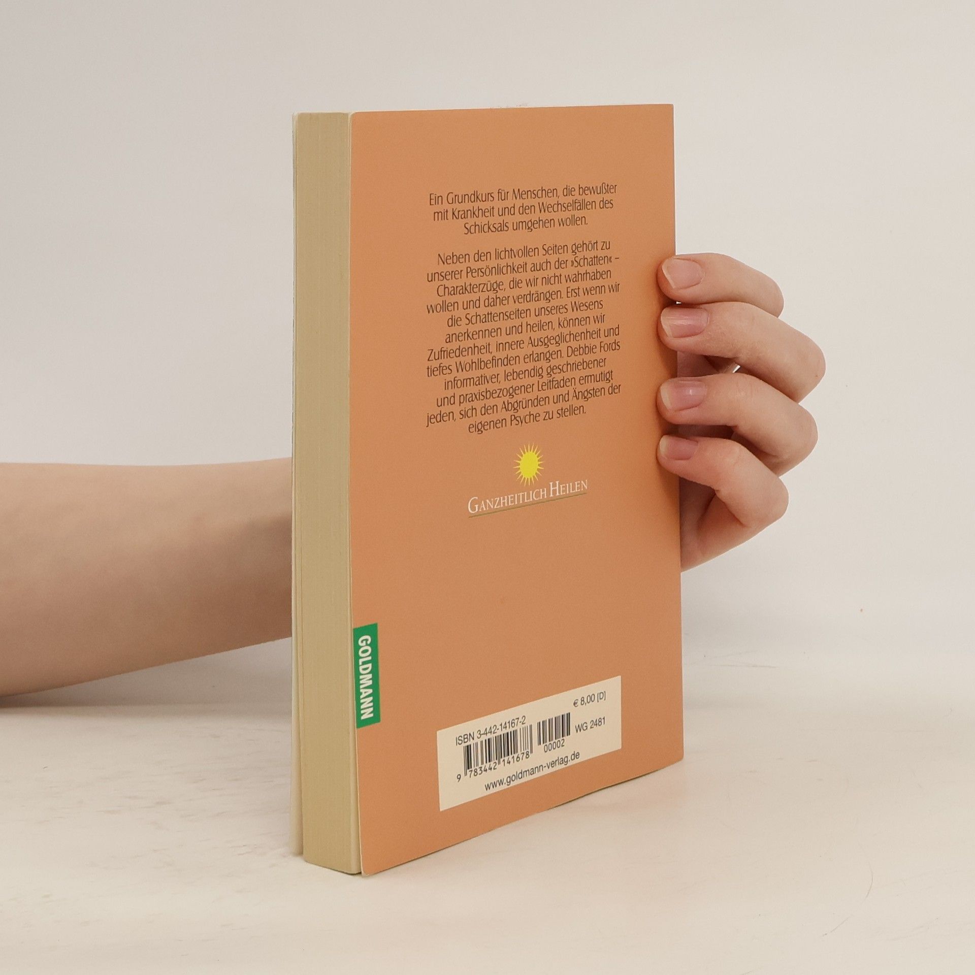 Um Zufriedenheit, innere Ausgeglichenheit und ganzheitliches Wohlbefinden zu erlangen, führt der Weg über die Anerkennung und Heilung der eigenen Schattenseiten. Debbie Fords informativer, lebendig geschriebener und praxisbezogener Leitfaden ermutigt jeden, sich den Abgründen und Ängsten der eigenen Psyche zu stellen. Ein Grundkurs für spirituell Suchende und Menschen, die bewußter mit Krankheit und den Wechselfällen des Schicksals umgehen wollen.