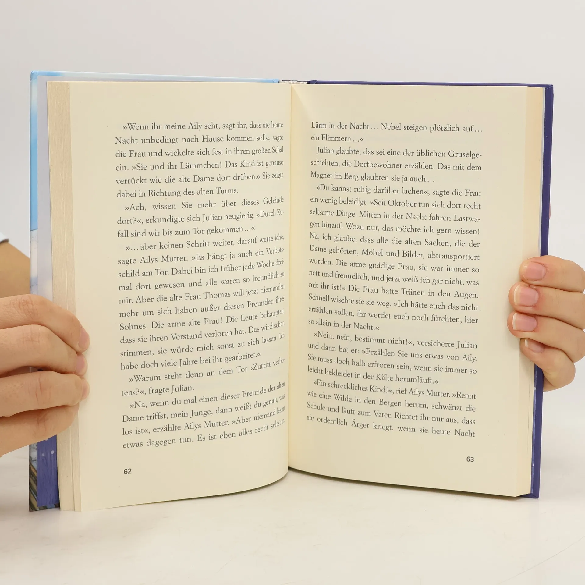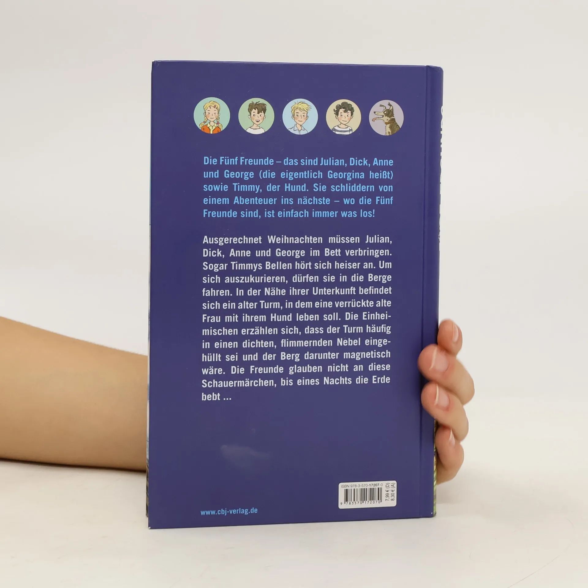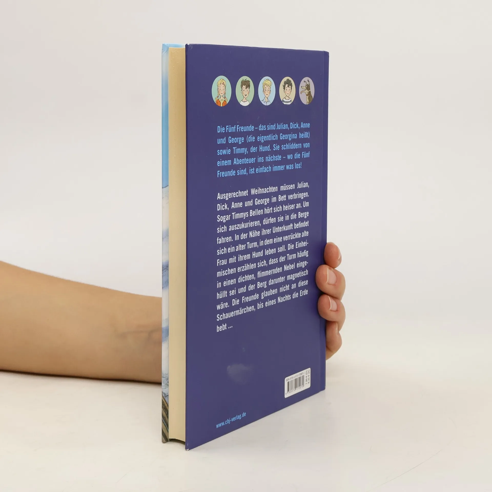 Winterferien in den Bergen! Die Fünf Freunde sind begeistert. In der Nähe ihrer Unterkunft befindet sich ein alter Turm, in dem eine verrückte alte Frau mit ihrem Hund leben soll. Die Einheimischen erzählen sich, dass der Turm häufig in einen dichten, flimmernden Nebel eingehüllt sei und der Berg darunter magnetisch wäre. Die Freunde glauben nicht an diese Schauermärchen, bis eines nachts die Erde bebt ... Ausstattung: Mit s/w Illustrationen