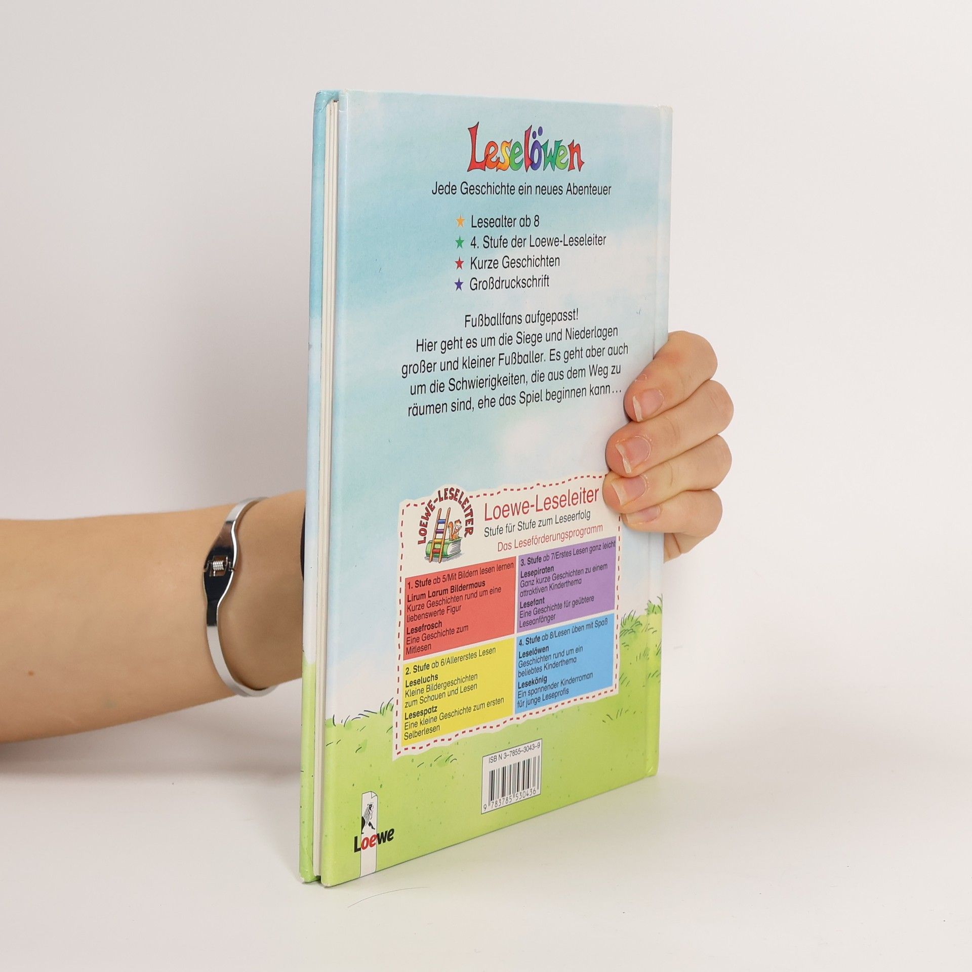 Lesealter ab 8 4. Stufe der Loewe-Leseleiter Kurze Geschichten Großdruckschrift Fußballfans aufgepasst! Hier geht es um die Siege und Niederlagen großer und kleiner Fußballer. Es geht aber auch um die Schwierigkeiten, die aus dem Weg zu räumen sind, ehe das Spiel beginnen kann.