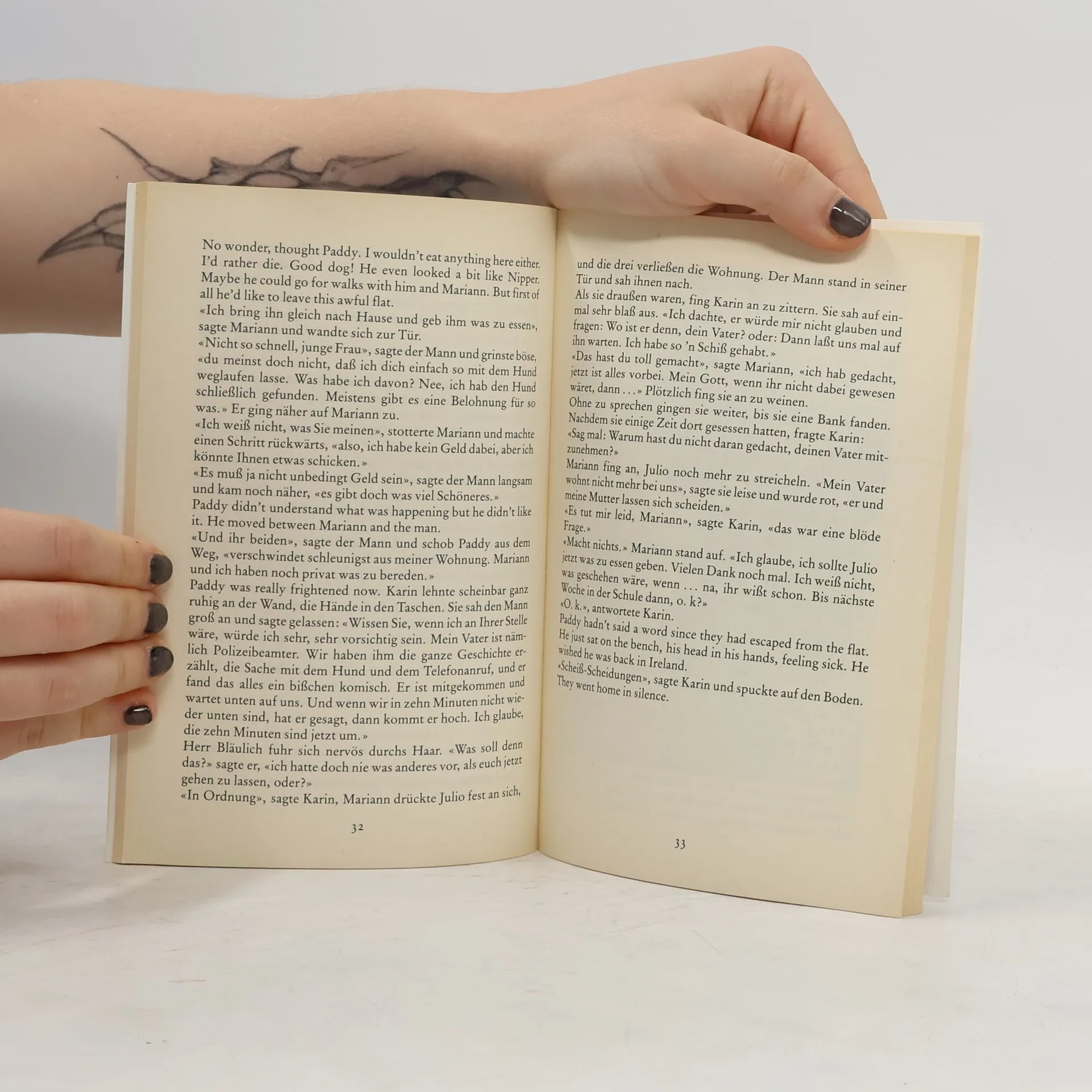 Dies ist die Geschichte von dem irischen Jungen Paddy, der mit seiner Mutter nach Berlin zieht und nun mit Karin eine etwas komplizierte Freundschaft eingeht. Paddy spricht kaum Deutsch, und Karin kann schlecht Englisch. Sie unterhalten sich in einem witzigen Sprachmischmasch, der es den Lesern ermöglicht, den ganzen Text ohne Wörterbuch aus dem Inhalt heraus zu verstehen. Am Ende haben sie mehr gelernt als in manchen mühsamen Lektionen in der Schule.