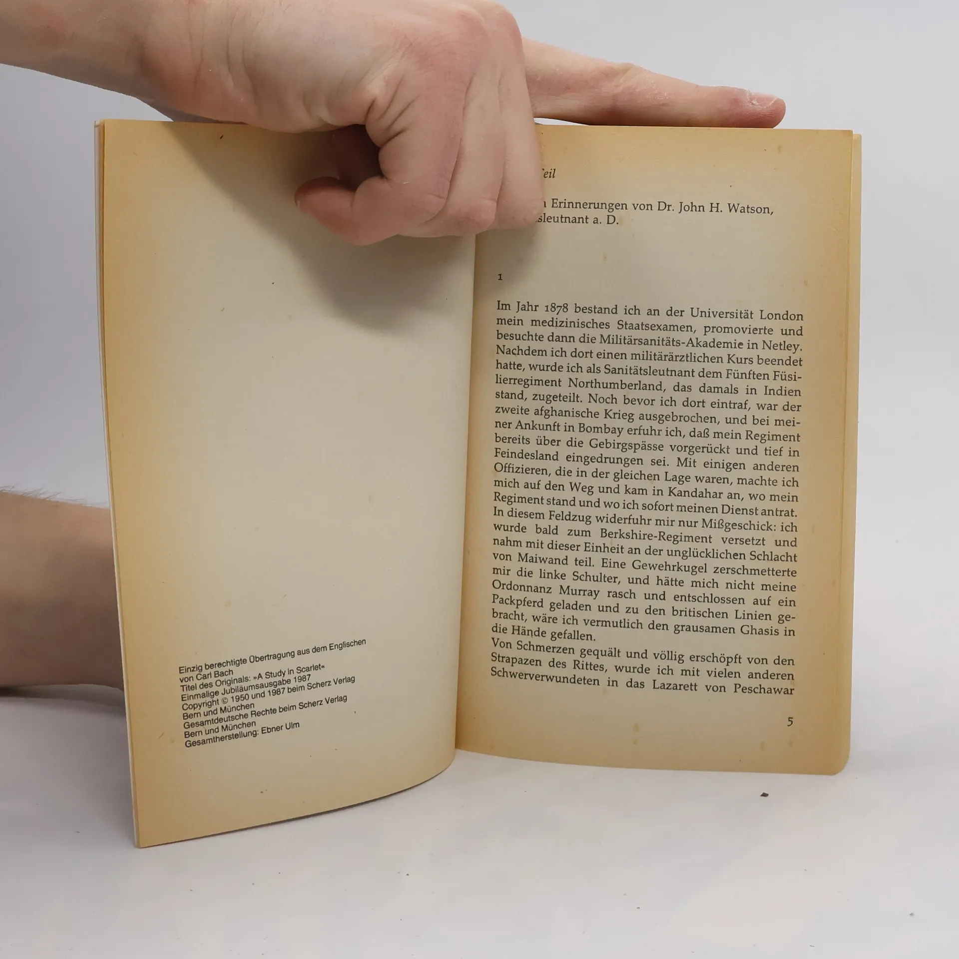 Im Jahr 1881 ziehen Watson und Holmes in eine gemeinsame Wohnung in der Baker Street. Ihre Freundschaft beginnt, als sie einen mysteriösen Todesfall in Lauriston Gardens untersuchen. Ein unvollständiges Wort "Rach" und ein Ehering führen Holmes zu spannenden Theorien über den Mord an Drebber.