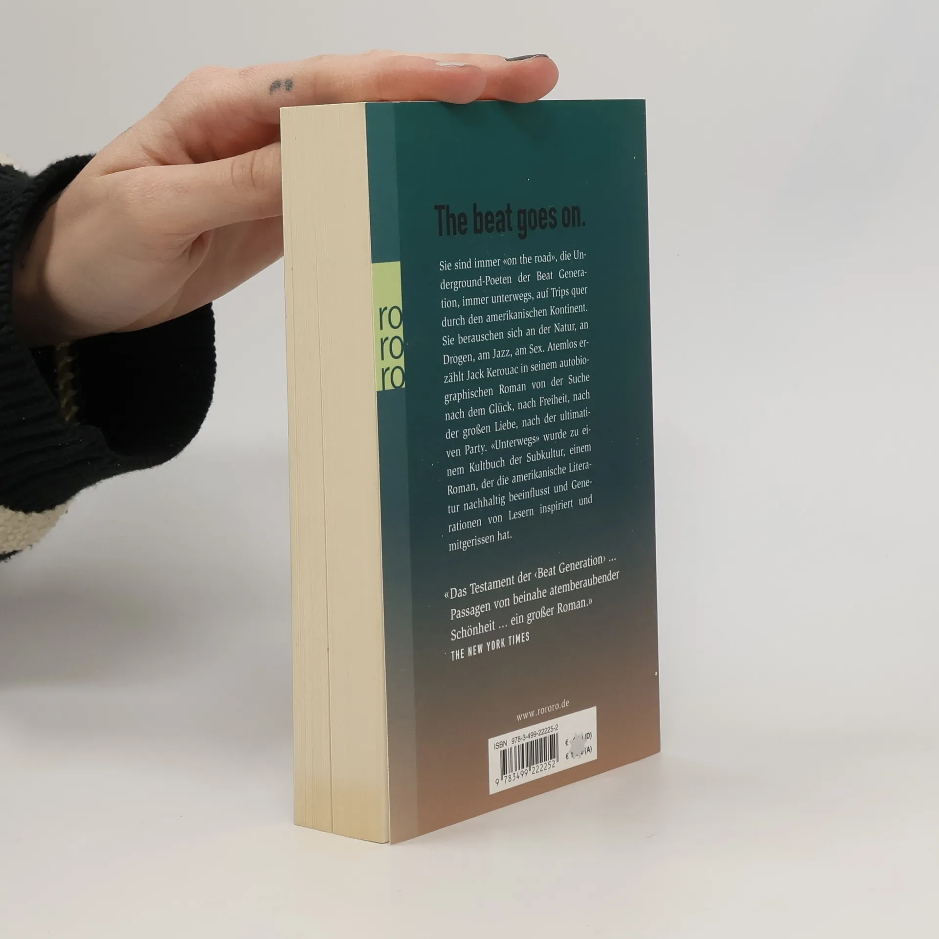 The Beat goes onSie sind immer «on the road», die Underground-Poeten der Beat Generation, immer unterwegs, auf Trips quer durch den amerikanischen Kontinent. Sie berauschen sich an der Natur, an Drogen, am Jazz, am Sex. Atemlos erzählt Jack Kerouac in seinem autobiografischen Roman von der Suche nach dem Glück, nach Freiheit, nach der großen Liebe, nach der ultimativen Party. «Unterwegs» wurde zu einem Kultbuch der Subkultur, einem Roman, der die amerikanische Literatur nachhaltig beeinflusst und Generationen von Lesern inspiriert und mitgerissen hat. «Das Testament der ‹Beat Generation› ... Passagen von beinahe atemberaubender Schönheit … ein großer Roman.» (The New York Times)