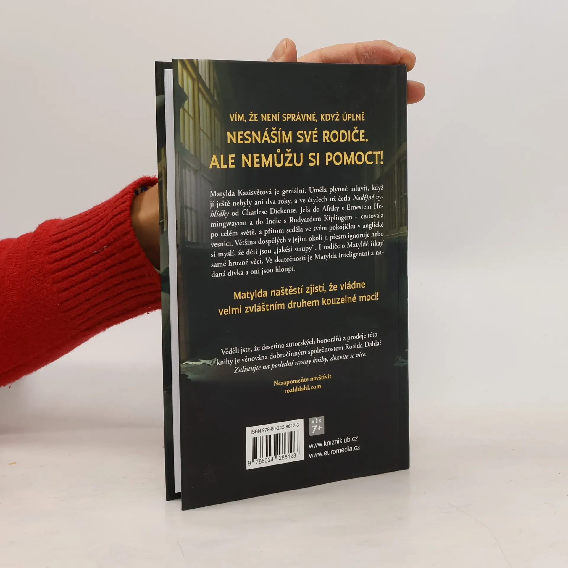 Matylda Kazisvětová je geniální. Uměla plynně mluvit, když jí ještě nebyly ani dva roky, a ve čtyřech už četla Nadějné vyhlídky od Charlese Dickense. Jela do Afriky s Ernestem Hemingwayem a do Indie s Rudyardem Kiplingem – cestovala po celém světě, a přitom seděla ve svém pokojíčku v anglické vesnici. Většina dospělých v jejím okolí ji přesto ignoruje nebo si myslí, že děti jsou „jakési strupy“. I rodiče o Matyldě říkají samé hrozné věci. Ve skutečnosti je Matylda inteligentní a nadaná dívka a oni jsou hloupí. Matylda naštěstí zjistí, že vládne velmi zvláštním druhem kouzelné moci! Pro děti od 7 let.