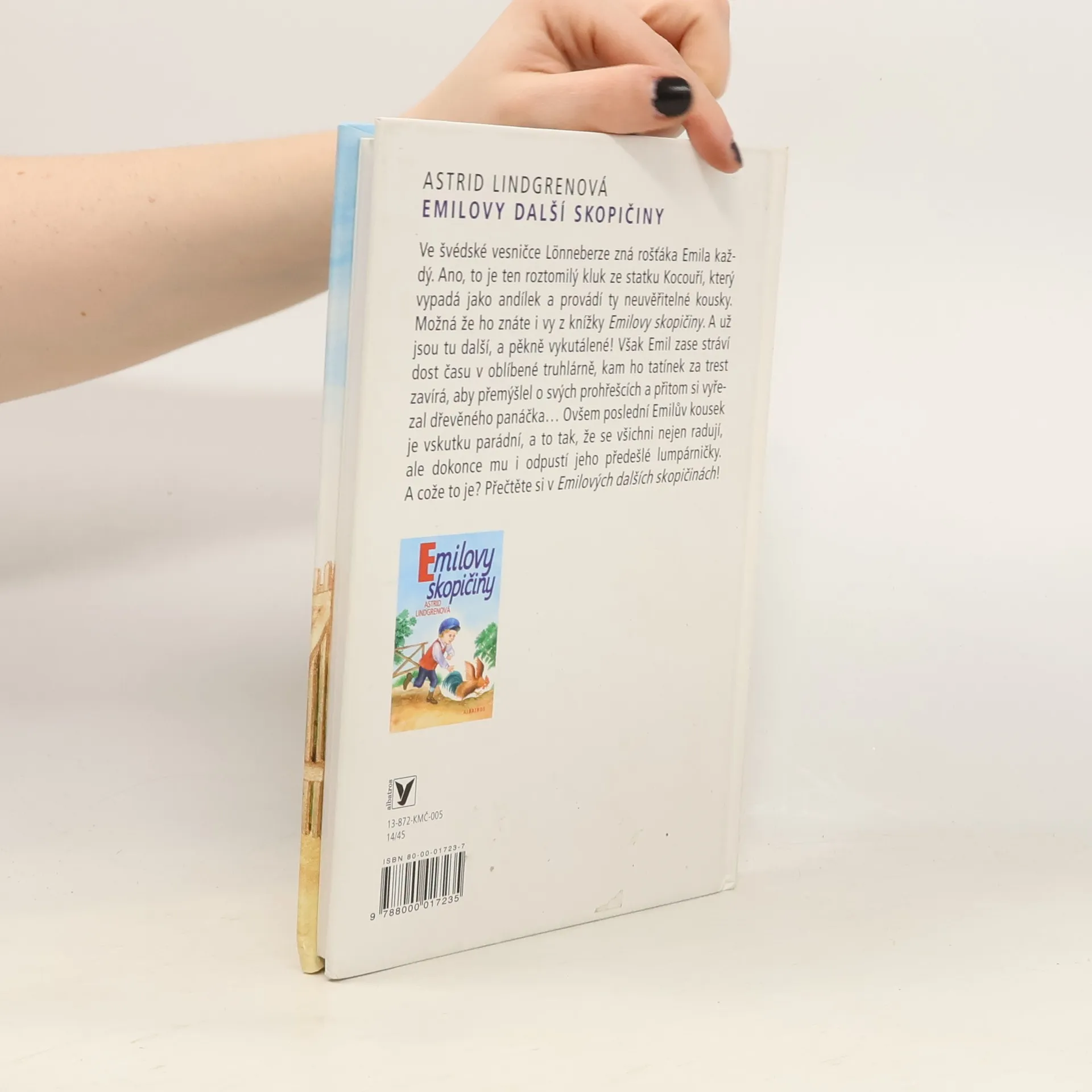Ve švédské vesničce Lönneberze zná rošťáka Emila každý. Ano, to je ten roztomilý kluk ze statku Kocouří, který vypadá jako andílek a provádí ty neuvěřitelné kousky. Možná že ho znáte i vy z knížky Emilovy skopičiny. A už jsou tu další, a pěkně vykutálené! Však Emil zase stráví dost času v oblíbené truhlárně, kam ho tatínek za trest zavírá, aby přemýšlel o svých prohřešcích a přitom si vyřezal dřevěného panáčka... Ovšem poslední Emilův kousek je vskutku parádní, a to tak, že se všichni nejen radují, ale dokonce mu i odpustí jeho předešlé lumpárničky. A cože to je? To se dozvíte v Emilových dalších skopičinách!