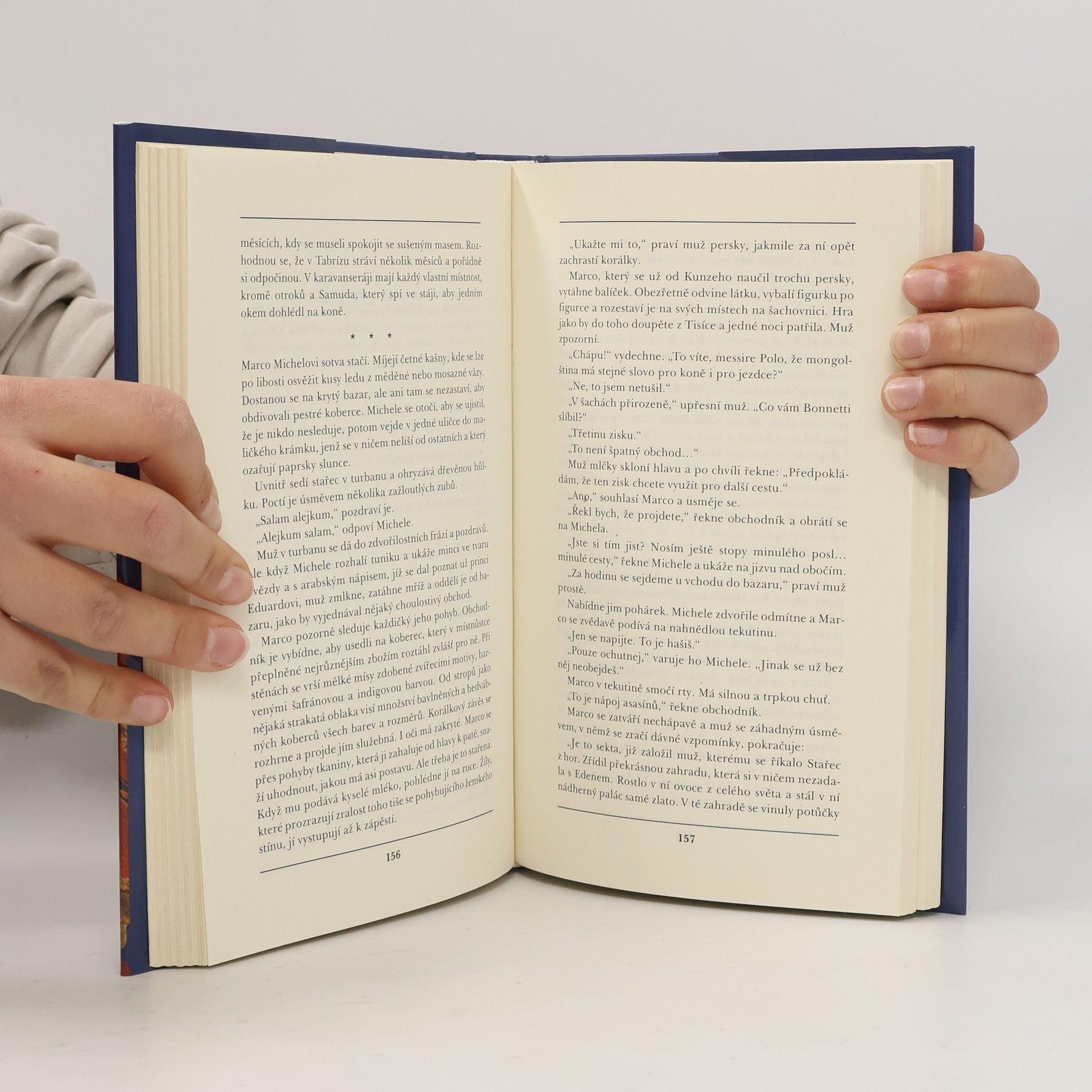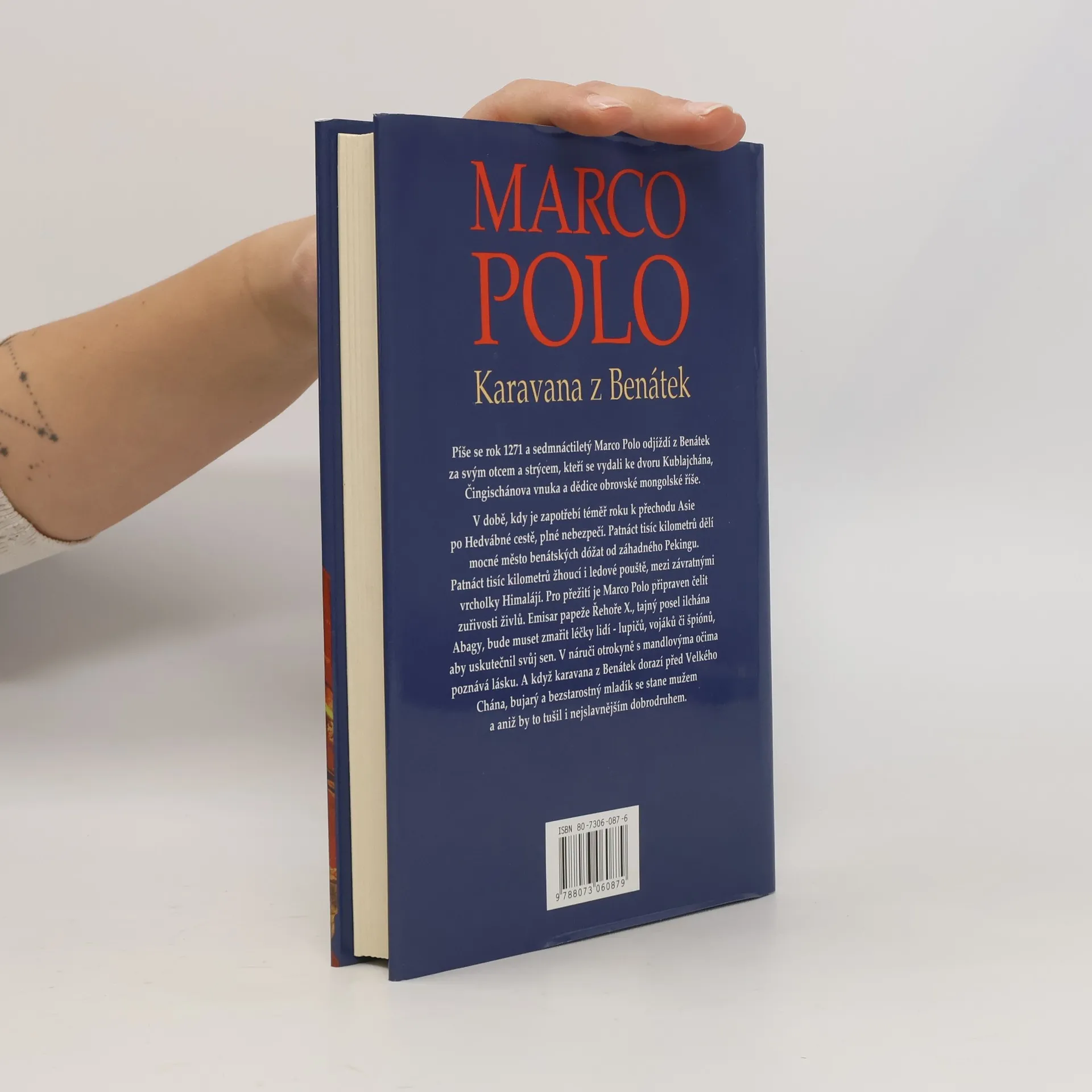 1. díl První díl trilogie o životě Marca Pola vypráví o dobrodružné cestě legendárního benátského kupce, který ve 13. století putoval z Benátek až na dvůr Kublajchána. Román vypráví o mladičkém benátčanovi Marco Polovi, jehož otec se právě vrací z daleké cesty až ke dvoru Kublajchána v Číně. Nepřeje si však, aby jeho syn šel v jeho stopách, chce mít z Marca kupce a obchodníka, který by zajišťoval jeho pozici v Benátkách. Marco však nesmírně touží zúčastnit se druhé otcovy výpravy a přes jeho zákaz se do této výpravy dostane. Následuje dramatická cesta z Jeruzaléma přes Přední Východ, který ovládá Zlatá horda až do pouští a vysokohorských oblastí Dálného východu. Jejich dramatická cesta je bojem s nepředvídatelnými a krutými nájezdníky i nevypočitatelnými přírodními podmínkami. Román končí okamžikem setkání s Kublajchánem