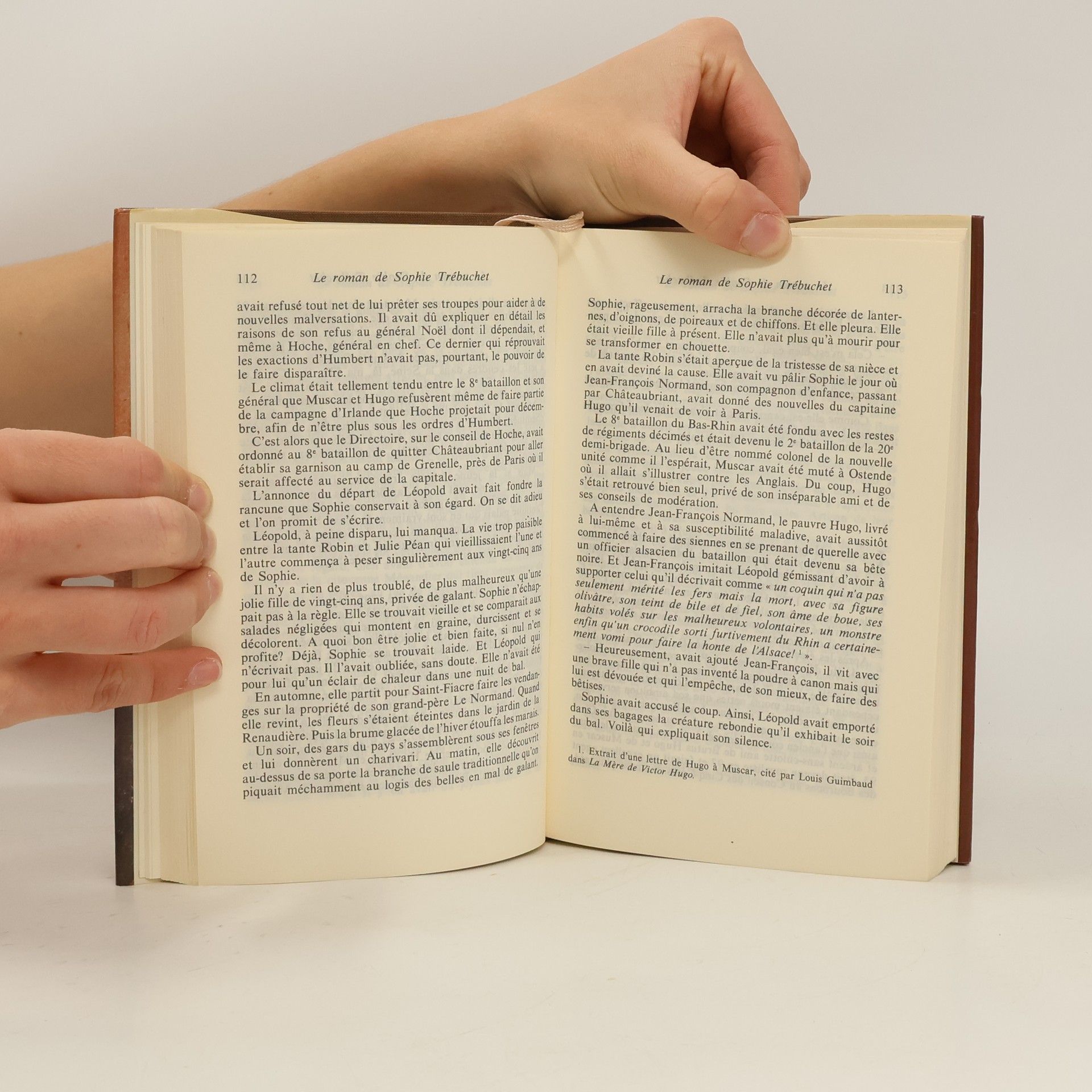 Elle avait vingt ans sous la Terreur, à Nantes. C'était une jeune fille aux idées avancées. Elle n'aimait pas les prêtres mais elle était royaliste. Amie des Vendéens insurgés, elle épousa pourtant un capitaine républicain. Pour son malheur. A Paris, sous le Directoire, elle rencontra l'amour fou. Le Général de la Horie était jeune, brillant et proscrit par Napoléon. Pour le retrouver, elle parcourut les routes de France, d'Italie et d'Espagne. Avec lui, elle complota contre le régime et tout cela se termina très mal. Elle avait trois fils dont le dernier s'appela Victor Hugo. C'est à cause de lui qu'on occulta sa vraie vie. Car, quand on est la mère d'une gloire nationale, il y a des choses qui ne sont pas permises. Surtout au XIXè siècle. " ...elle fut mêlée, parfois de très près, aux fascinantes péripéties de son époque. Un vrai roman d'aventures " J.Laurent Le Quotidien de Paris Le Roman de Sophie Trébuchet a obtenu le prix Kléber Haedens 1983.