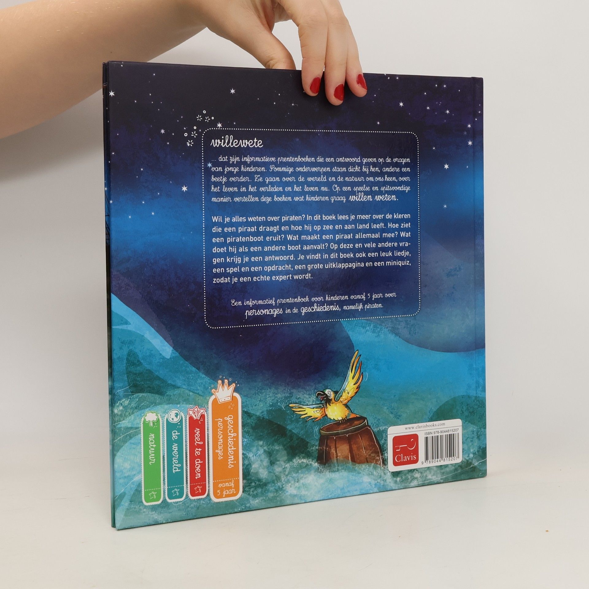 Kapitein Billie Zilver vertelt over zijn schip, bemanning en zijn leven op zee als piraat. Prentenboek met informatie over piraten, lied, spel, quiz en veel kleurenillustraties. Vanaf ca. 4 jaar; zelf lezen vanaf ca. 7 jaar.
