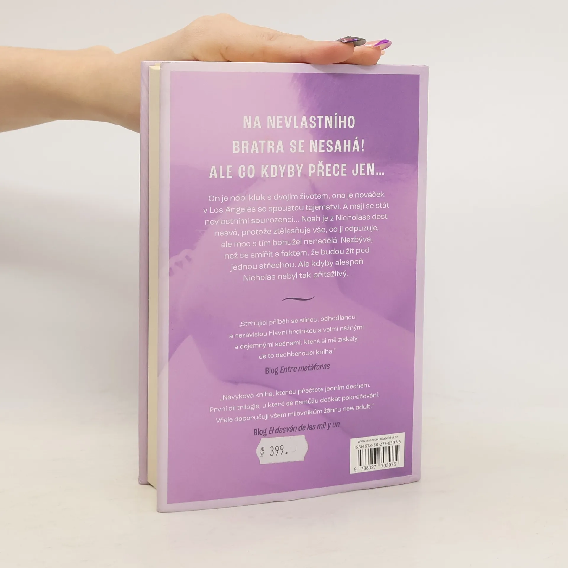 Nicholas Leister byl stvořen, aby mi znepříjemňoval život. Vysoký, modré oči, vlasy černé jako noc... Zní to skvěle, že? Ne tak skvěle, když zjistíte, že se z něj stane váš nevlastní bratr a představuje vše, před čím jste odjakživa utíkali. Nebezpečí – to bylo první, co mě napadlo, když jsem se s ním seznámila a zjistila, že před svým tátou miliardářem skrývá dvojí život. Jak jsem se do něj mohla zamilovat? Snadno. Člověk s takovýma očima dokáže obrátit váš svět vzhůru nohama.