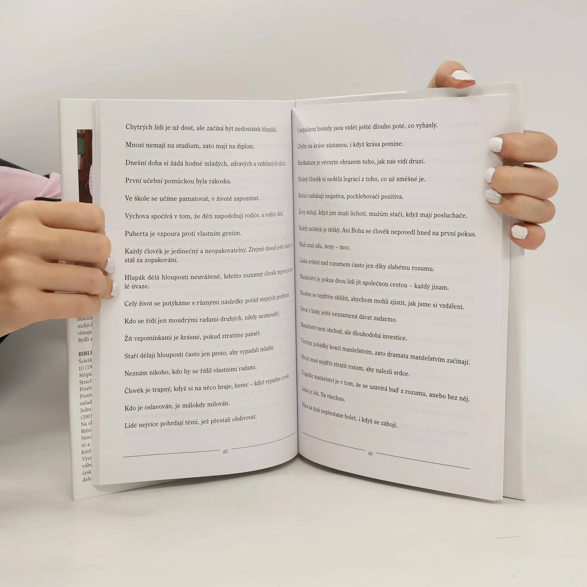 Knížka aforismů dvou autorů, která má za cíl především pobavit, ale v ideálním případě také přimět k hlubšímu zamyšlení. Aforismus jako nejkratší literární útvar se skvěle hodí opravdu pro každou příležitost, ať už je to obyčejný všední den nebo nějaký významný svátek. Lech PRZECZEK "I když byl výborným plavcem, snadno se utopil v dluzích" Patricie HOLEČKOVÁ "S klesajícím nebezpečím roste odvaha"