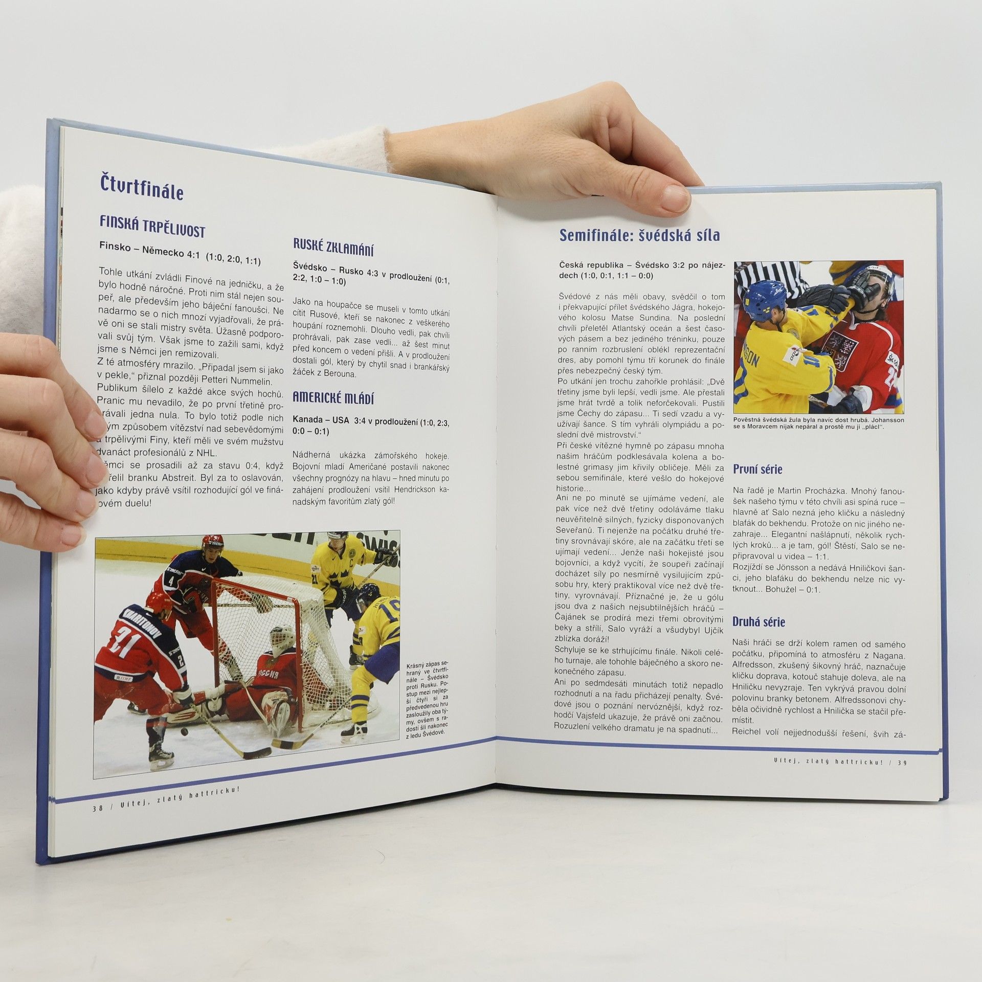 Kronika Mistrovství světa v ledním hokeji 2001. Již potřetí za sebou se podařilo vyhrát českým hokejistům zlatou medaili a získat tak zlatý hattrick. Průběh mistrovství přibližuje tato reportáž doplněná bohatým fotografickým doprovodem a různými statistikami. Kniha obsahuje vše spojené s hokejovým MS 2001 - články, výsledky, statistiky, postřehy hráčů, fotografie.