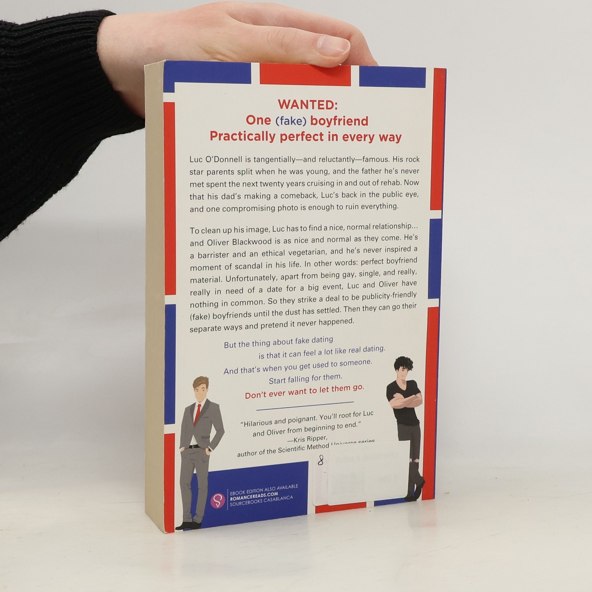 Wanted: One (fake) boyfriend Practically perfect in every way Luc O'Donnell is tangentially--and reluctantly--famous. His rock star parents split when he was young, and the father he's never met spent the next twenty years cruising in and out of rehab. Now that his dad's making a comeback, Luc's back in the public eye, and one compromising photo is enough to ruin everything. To clean up his image, Luc has to find a nice, normal relationship...and Oliver Blackwood is as nice and normal as they come. He's a barrister, an ethical vegetarian, and he's never inspired a moment of scandal in his life. In other words: perfect boyfriend material. Unfortunately apart from being gay, single, and really, really in need of a date for a big event, Luc and Oliver have nothing in common. So they strike a deal to be publicity-friendly (fake) boyfriends until the dust has settled. Then they can go their separate ways and pretend it never happened. But the thing about fake-dating is that it can feel a lot like real-dating. And that's when you get used to someone. Start falling for them. Don't ever want to let them go.