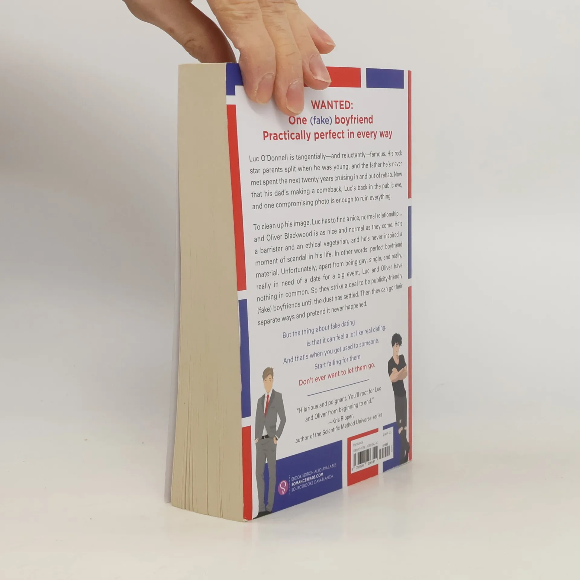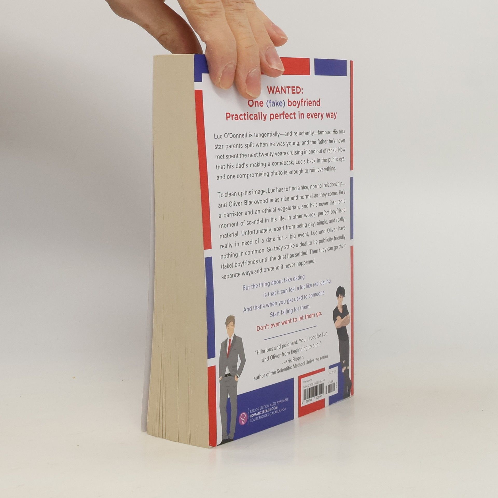 Wanted: One (fake) boyfriend Practically perfect in every way Luc O'Donnell is tangentially--and reluctantly--famous. His rock star parents split when he was young, and the father he's never met spent the next twenty years cruising in and out of rehab. Now that his dad's making a comeback, Luc's back in the public eye, and one compromising photo is enough to ruin everything. To clean up his image, Luc has to find a nice, normal relationship...and Oliver Blackwood is as nice and normal as they come. He's a barrister, an ethical vegetarian, and he's never inspired a moment of scandal in his life. In other words: perfect boyfriend material. Unfortunately apart from being gay, single, and really, really in need of a date for a big event, Luc and Oliver have nothing in common. So they strike a deal to be publicity-friendly (fake) boyfriends until the dust has settled. Then they can go their separate ways and pretend it never happened. But the thing about fake-dating is that it can feel a lot like real-dating. And that's when you get used to someone. Start falling for them. Don't ever want to let them go.