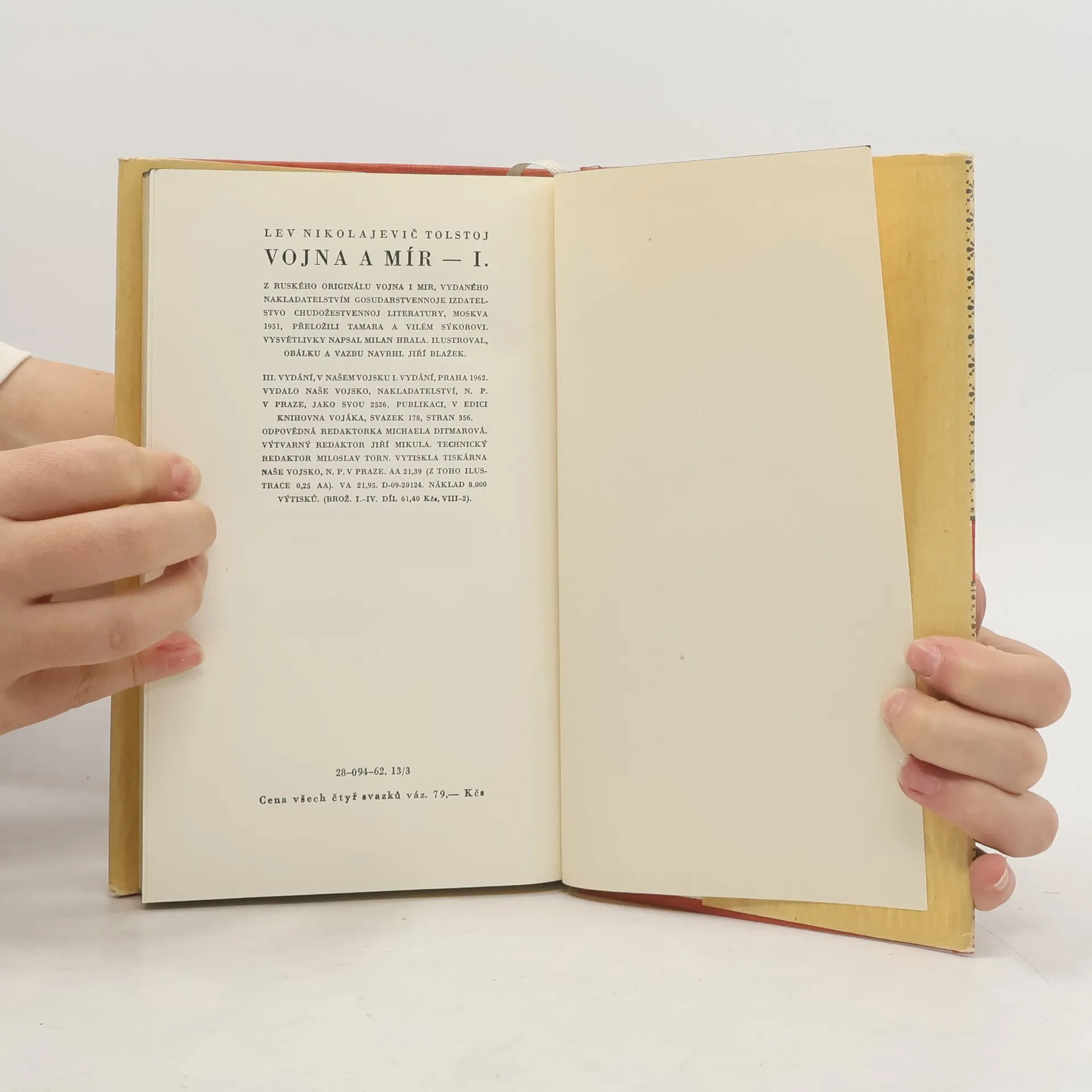 Epos Vojna a mír je spolu s románem Anna Karenina nejslavnějším dílem jednoho z největších romanopisců všech dob, a také nejspíš nejoblíbenější romancí na světě vůbec, o čemž svědčí již jen počet filmových adaptací tohoto díla. Jeho dramatickým jádrem jsou změny odehrávající se v pěti rodinách, některých rolnických, jiných aristokratických, během úpadku společnosti v době napoleonských válek. Tolstoj, jeden z největších myslitelů 19. století, zde vytvořil vlastní vesmír obydlený živými hrdiny, jejichž životy odrážejí hlavní Tolstého témata - sebe-obětování a sebe-odpuštění, úzkost a extáze, diplomacie a zrada, víra a zatracení - a opatřil jej dialogy hýřícími humorem a vtipem a fascinujícími živými bitevní scénami. Napoleonovo tažení do Ruska se stává úhelným kamenem, bodem, do nějž se sbíhají osudy všech hlavních postav, a současně mezníkem vývoje ruské společnosti. 28-094-62