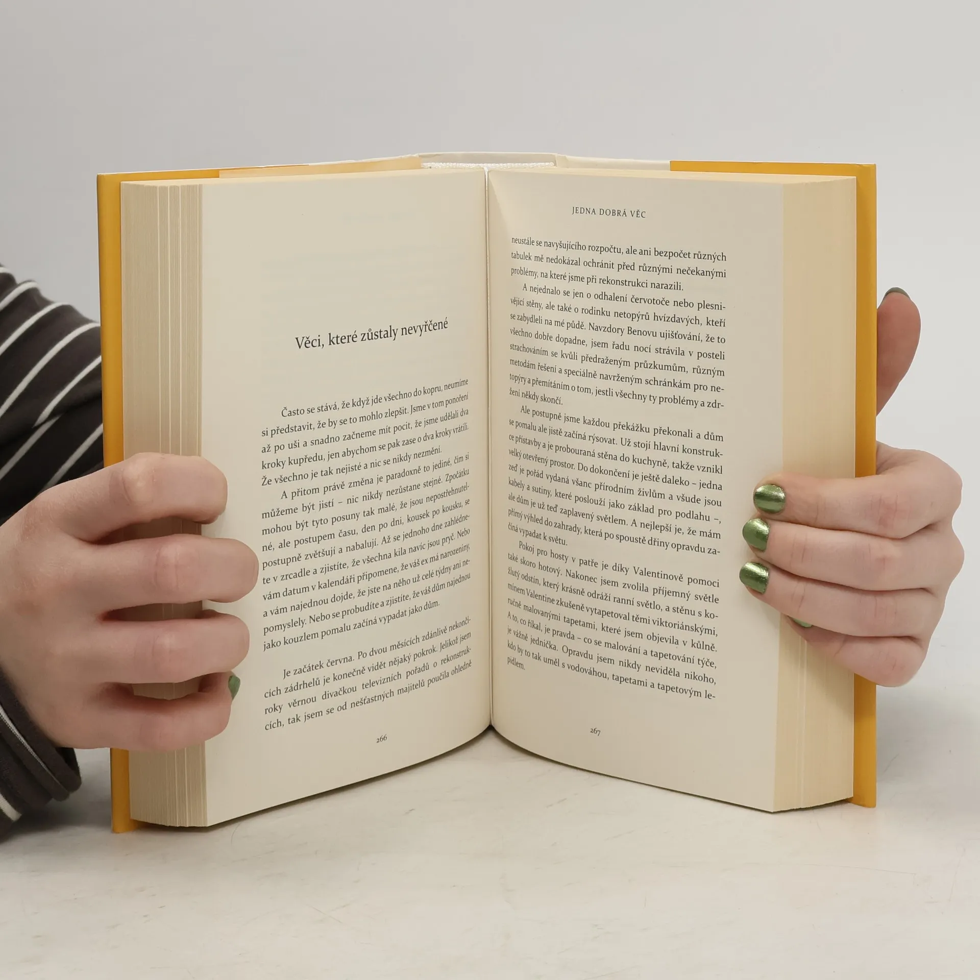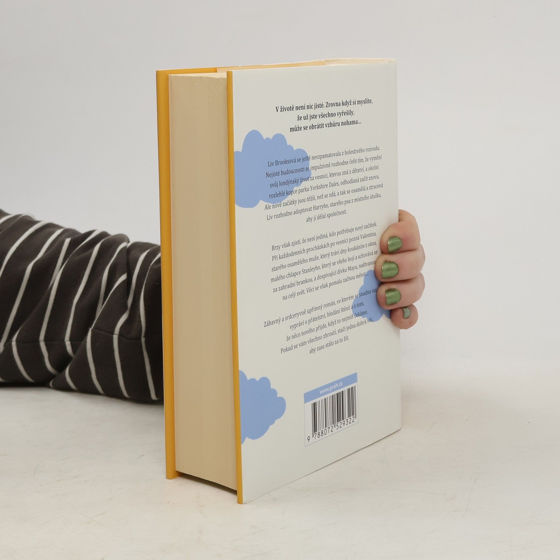 V životě není nic jisté. Zrovna když si myslíte, že už jste všechno vyřešily, může se obrátit vzhůru nohama… Liv Brooksová se ještě nevzpamatovala z bolestivého rozvodu. Nejisté budoucnosti se impulzivně rozhodne čelit tím, že vymění svůj londýnský život za vesnici, kterou zná z dětství, a okolní rozlehlé kopce parku Yorkshire Dales, odhodlaná začít znovu. Ale nové začátky jsou těžší, než se zdá, a tak se osamělá a ztracená Liv rozhodne adoptovat Harryho, starého psa z místního útulku, aby jí dělal společnost. Brzy však zjistí, že není jediná, kdo potřebuje novy´ začátek. Při každodenních procházkách po vesnici pozná Valentina, starého osamělého muže, který tráví dny koukáním z okna, malého chlapce Stanleyho, který se všeho bojí a schovává se za zahradní brankou, a dospívající dívku Mayu, naštvanou na cely´ svět. Věci se však pomalu začnou měnit… Zábavný a srdceryvně upřímný román, ve kterém se snadno najdete, vypráví o přátelství, hledání štěstí a o tom, že něco nového přijde, když to nejmíň čekáme. Pokud se vám všechno zhroutí, stačí jedna dobrá věc, aby zase stálo za to žít.