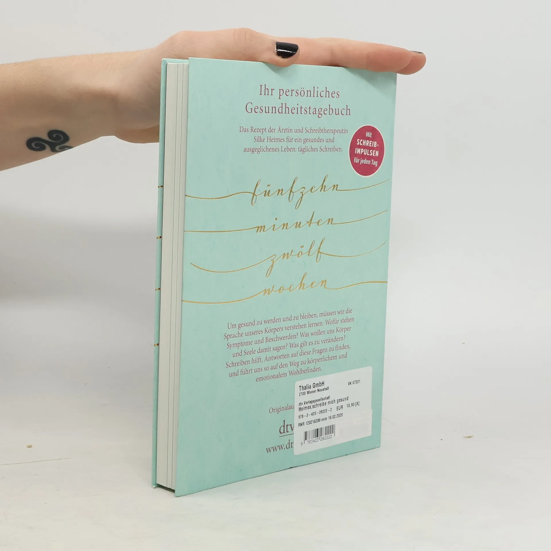 Zahlreiche Studien zeigen: 15 Minuten schreiben am Tag verbessert die Gesundheit Prof. Dr. med. Silke Heimes zeigt, wie dieses Buch Ihr Leben gesünder macht. Denn Schreiben - senkt den Blutdruck - stärkt das Immunsystem - beruhigt Magen und Darm - befreit die Lunge - vermindert die Angst - hilft gegen Depression - macht gesund und glücklich Viele Ärzte betreiben heutzutage »Reparaturmedizin« an ihren Patienten, statt nach den Ursachen der Beschwerden zu suchen. Mit Hilfe der Ärztin und Schreibtherapeutin Silke Heimes werden wir selbst die besten Experten für unsere Gesundheit. Ihr Rezept: zwölf Wochen lang schreiben, jeden Tag fünfzehn Minuten. Anhand von klaren und motivierenden täglichen Schreibimpulsen lernen wir, die Warnsignale unseres Körpers wieder als solche wahrzunehmen, einen guten Umgang mit körperlichen und psychischen Beschwerden zu finden und zugleich zu erkennen, was uns gesund und ausgeglichen macht. - Zweifarbig gestaltetes Arbeits- und Ausfüllbuch - Mit Schreibimpulsen für jeden Tag - Mit Lesebändchen