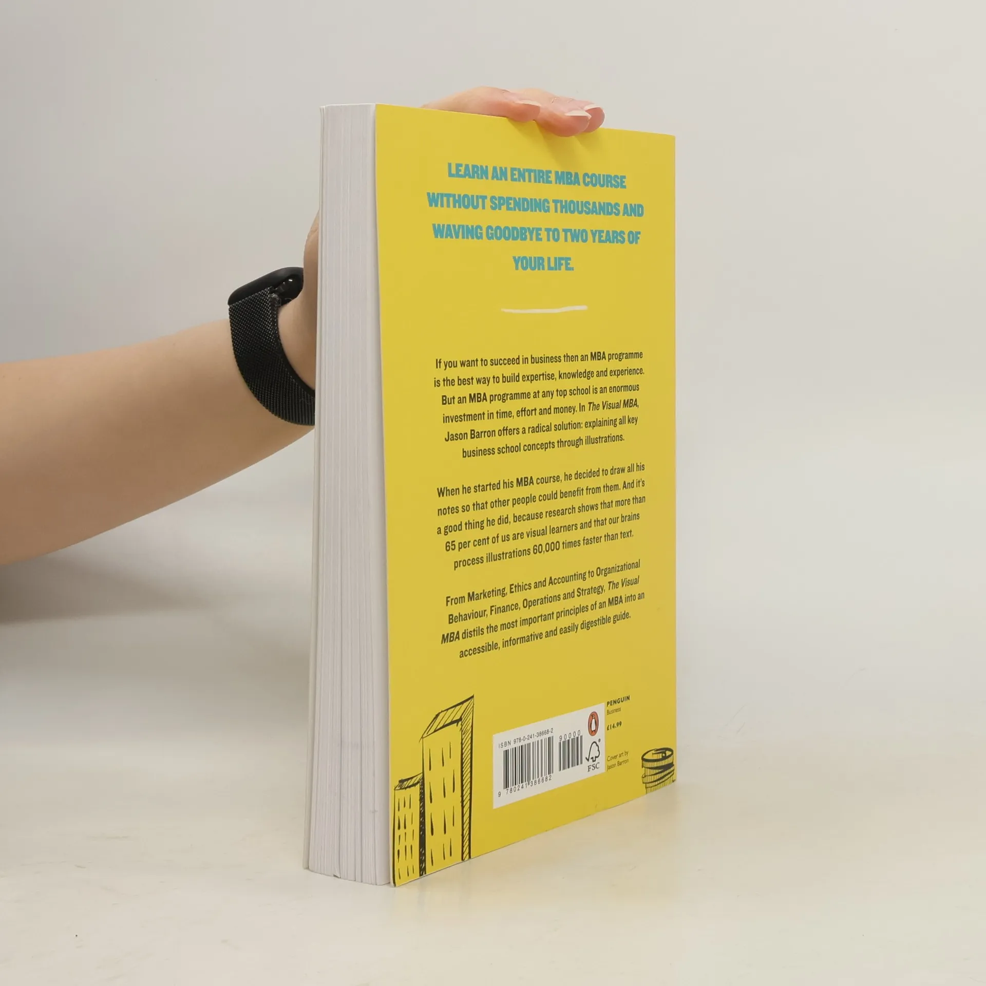 You want to transform your business and working life forever but don't have spare 100,000 dollars and up to two years to invest in a MBA program? In The Visual MBA, Jason Barron offers a radical solution. When he started his Masters in Business Administration, Barron decided to draw all his notes so that other people could benefit from them. These doodles or 'sketchnotes' are shown to improve our learning by combining two key learning functions, audio and visuals. Research indicates that more than 65% of us are visual learners and that visuals are processed 60,000 faster than text. Now, with The Visual MBA, you can learn the key concepts of the course quick and at a fraction of the cost. From Marketing, Ethics and Accounting to Organisational Behaviour, Quantitative Analysis, Finance, Operations and Strategy, Barron's sketchnotes are an accessible, informative and easily-digestible guide to your visual MBA