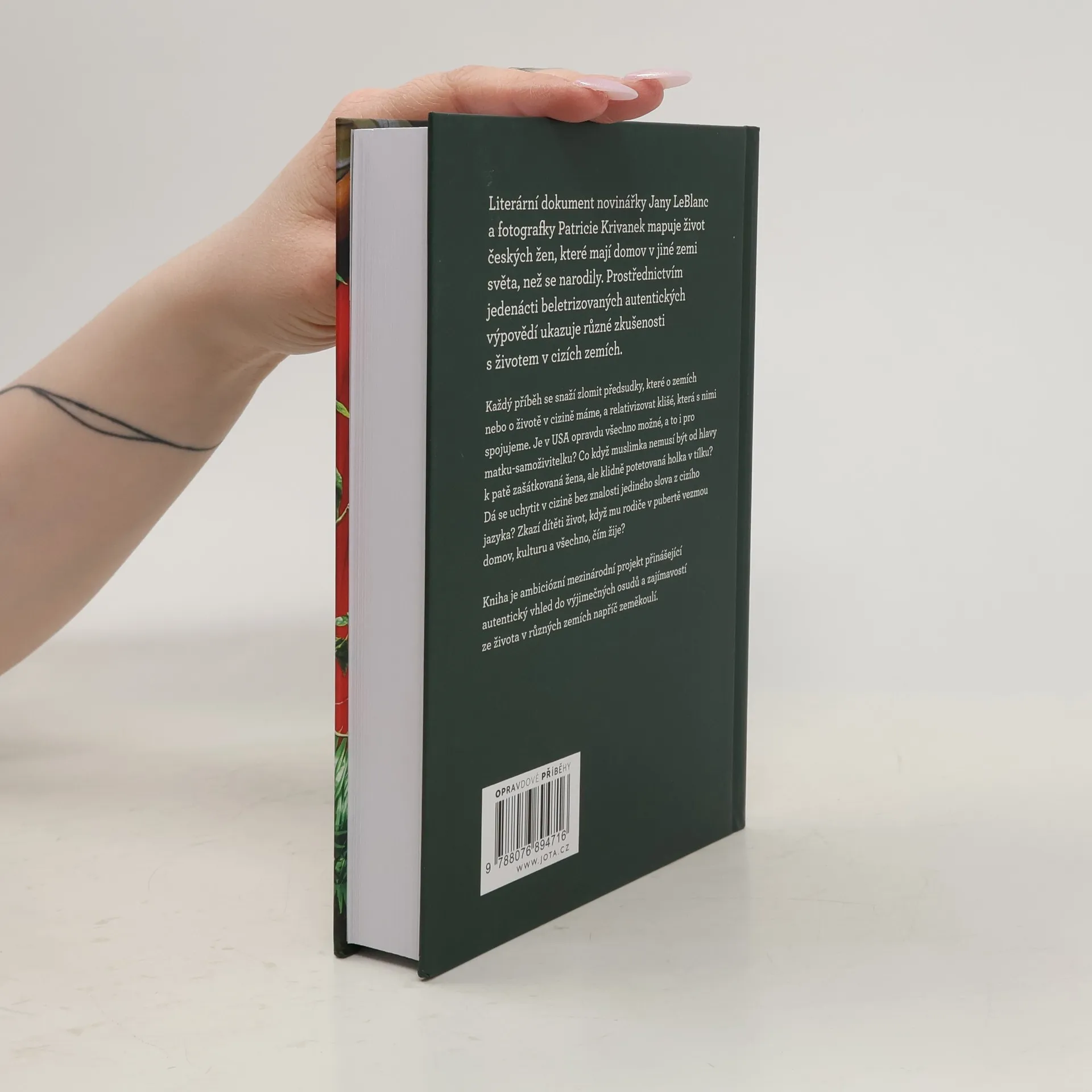 Příběhy žen, které žijí dlouhodobě v cizině a přibližují kulturní rozdíly v dané zemi na svém vlastním osudu. Literární dokument novinářky Jany LeBlanc a fotografky Patricie Krivanek mapuje život českých žen, které mají domov v jiné zemi světa, než se narodily. Prostřednictvím jedenácti beletrizovaných autentických výpovědí ukazuje různé zkušenosti s životem v cizích zemích. Každý příběh se snaží zlomit předsudky, které o zemích nebo o životě v cizině máme, a relativizovat klišé, která s nimi spojujeme. Je v USA opravdu všechno možné, a to i pro matku-samoživitelku? Co když muslimka nemusí být od hlavy k patě zašátkovaná žena, ale klidně potetovaná holka v tílku? Dá se uchytit v cizině bez znalosti jediného slova cizího jazyka? Zkazí rodiče dítěti život, když mu rodiče v pubertě vezmou domov, kulturu a všechno, čím žije? Kniha je ambiciózní mezinárodní projekt přinášející autentický vhled do výjimečných osudů a zajímavostí ze života v různých zemích napříč zeměkoulí.