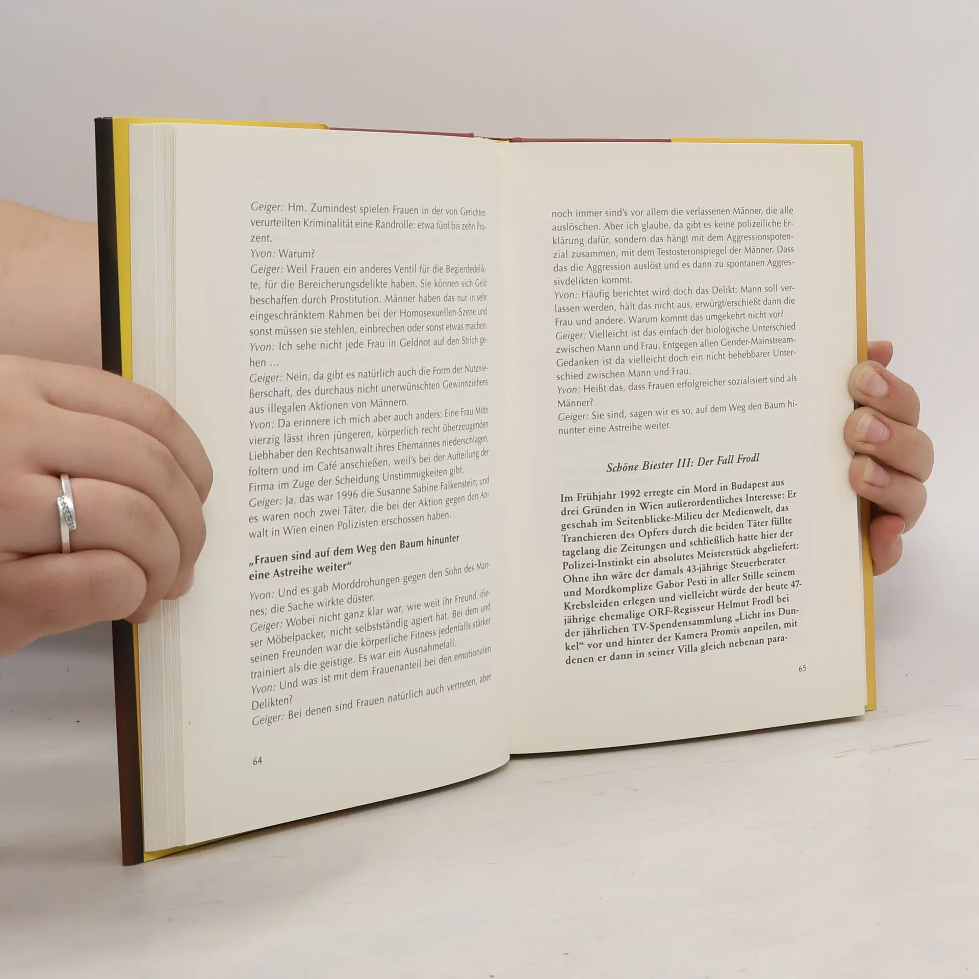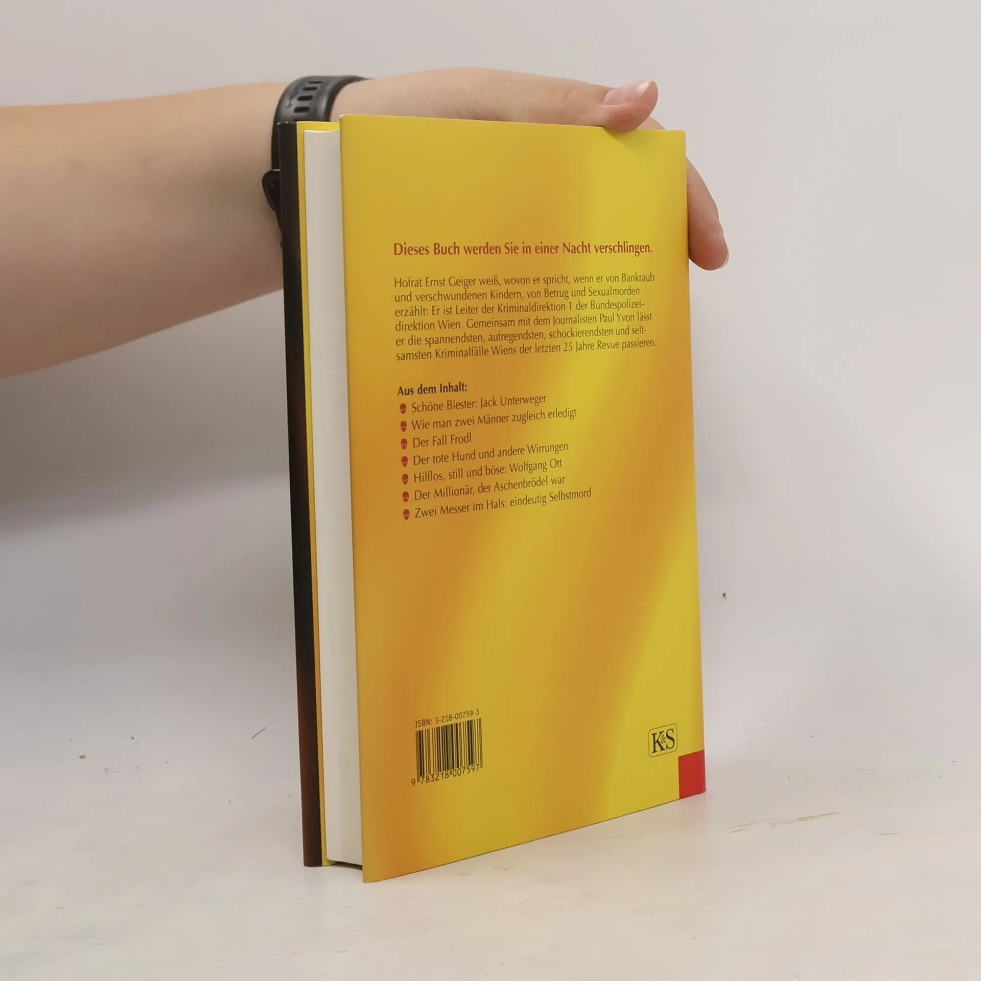 Das Buch werden Sie in einer Nacht verschlingen. Gemeinsam mit dem Journalisten Paul Yvon lässt Hofrat Ernst Geiger, Leiter der Kriminaldirektion 1 der Bundespolizeidirektion Wien, die spannendsten, schockierendsten und seltsamsten Kriminalfälle Wiens der letzten 25 Jahre Revue passieren. Die Autoren schildern mit einem Augenzwinkern, warum es besser ist, keine gestohlenen Autos zu stehlen, erklären, wie es dazu kam, dass es im Gasthaus „Zur Wiener Gemütlichkeit“ eines Tages höchst ungemütlich wurde, als Sieglinde V. ihre Rivalin Steffi erschoss, und erinnern sich an Mörder-Groupies, die ihren gefährlichen Angebeteten überallhin folgen. Eine scharfsinnige, subjektiv gewichtete, anekdotische, bisweilen witzige Analyse der dunklen Seite der Gesellschaft.