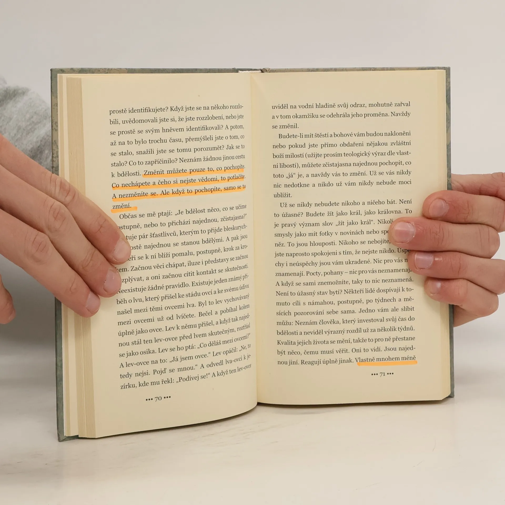 Probouzet lidi a odhalovat jim pravdu o jejich vlastní velikosti – to je cíl, který si Anthony de Mello kladl při své práci s lidmi, a tedy i cíl této knihy, která jeho práci s lidmi zpětně zachycuje. Jeho schopnost odhalovat mylnost našich přesvědčení a scestnost našich sebeklamů a iluzí nám nemusí být vždy příjemná, ale přesto je potřebná.