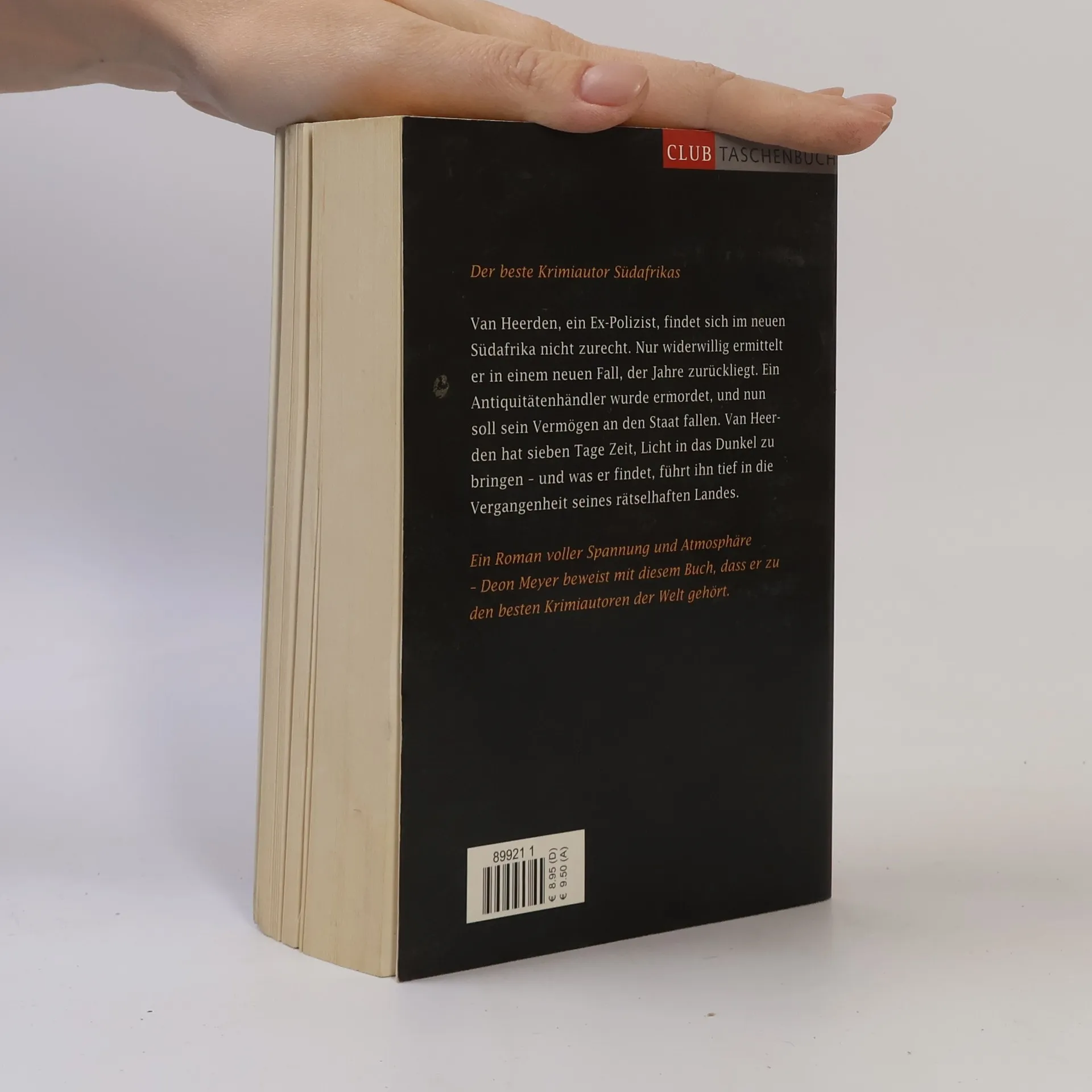 Ein Mörder mit Vergangenheit Zatopek van Heerden, ein ehemaliger Polizist, wird als Privatdetektiv mit einem ganz und gar undankbaren Fall betraut. Er soll den Mord an einem Antiquitätenhändler aufklären, den die Polizisten längst zu den Akten gelegt hat. Doch nun droht das Vermögen des Toten, der kein Testament hinterlassen hat, statt an seine Lebensgefährtin an den Staat zu fallen. Als van Heerden schon aufgeben will, fällt ihm auf, dass der Ausweis des Toten gefälscht ist. Anscheinend hat er eine andere Identität angenommen. Und dann meldet sich auch noch eine alte Frau und behauptet, die Mutter des Toten zu sein. Ein Roman voller Spannung und Atmosphäre - Deon Meyer beweist mit diesem Buch, dass er zu den besten Krimiautoren der Welt gehört.
