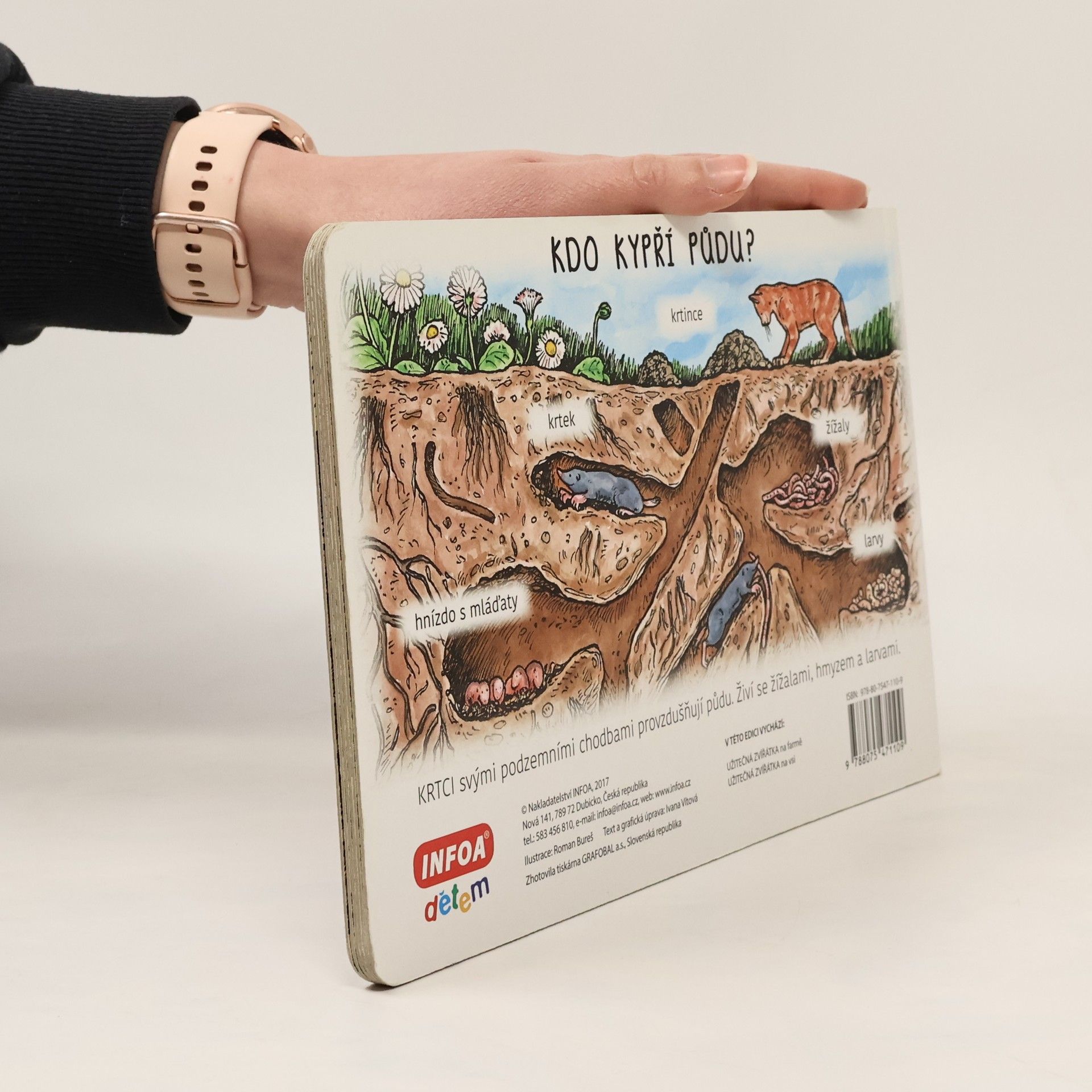 Kdo chytá mouchy? Kdo nám dává med? Kdo se živí mšicemi? Kdo pojídá slimáky a housenky, kdo se živí hmyzem a semeny rostlin? Knížkové leporelo s veselými obrázky ve kterém děti poznají, čím jsou užitečná zvířátka na vsi.