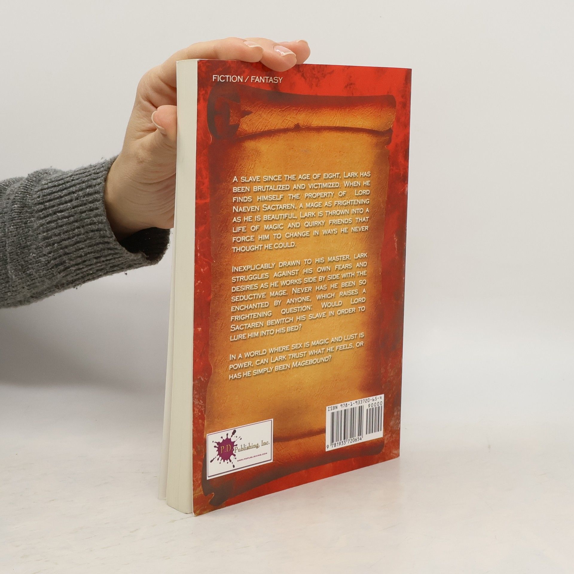 A slave since the age of eight, Lark has been brutalized and victimized. When he finds himself the property of Lord Naeven Sactaren, a mage as frightening as he is beautiful, Lark is thrown into a life of magic and quirky friends that force him to change in ways he never thought he could.Inexplicably drawn to his master, Lark struggles against his own fears and desires as he works side by side with the seductive mage. Never has he been so enchanted by anyone, which raises a frightening question: Would Lord Sactaren bewitch his slave in order to lure him into his bed? In a world where sex is magic and lust is power, can Lark trust what he feels, or has he simply been Magebound?