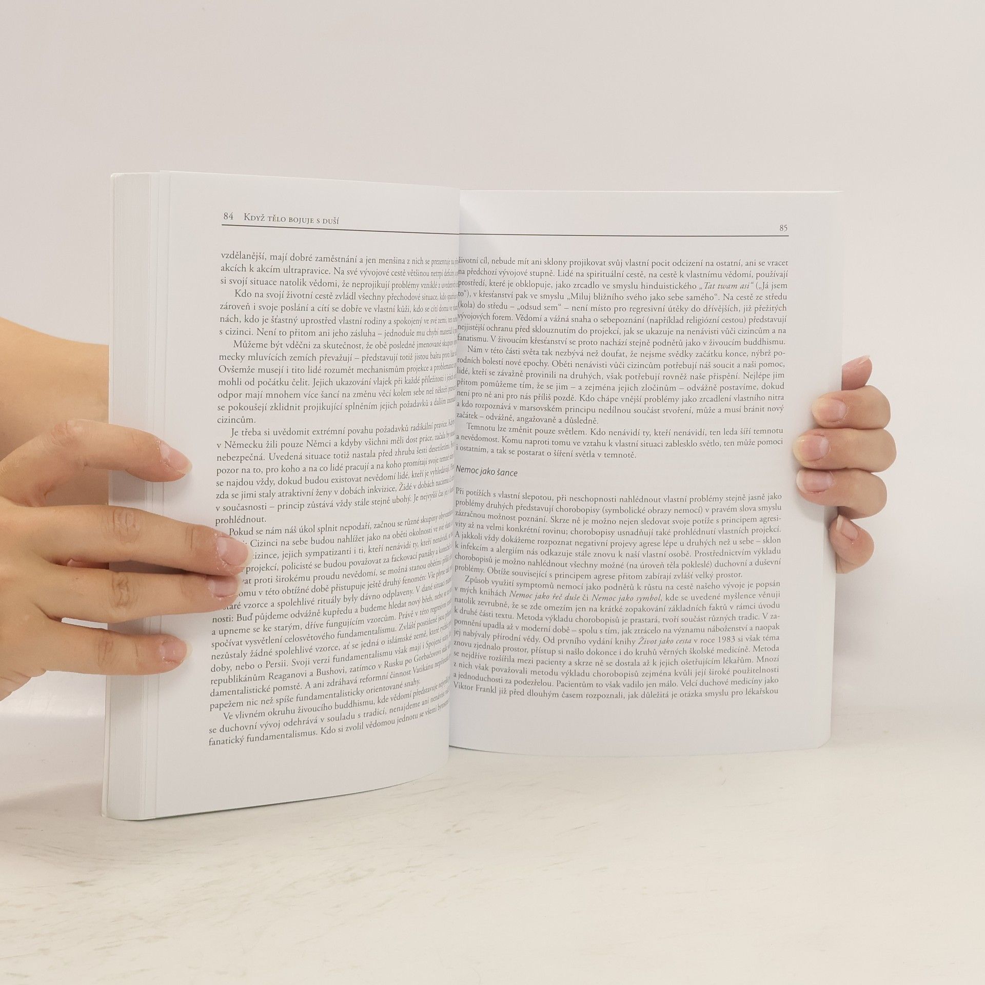 Autor (lékař a psychoterapeut) rozebírá aktuální zdravotní problémy současnosti. Tělesné onemocnění je vlastně projevem vnitřního napětí, hněvu a potlačované agrese. Pokud se nevyrovnáme s principem agrese, obrátí se nakonec proti nám, takže ve výsledku můžeme bojovat proti sobě samým. Autor čtenáře přiměje k zamyšlení, aby namísto svého vnitřního boje těla a duše našel odvahu ke změně.Tato kniha je aktualizovaným vydáním knihy Agrese jako šance.