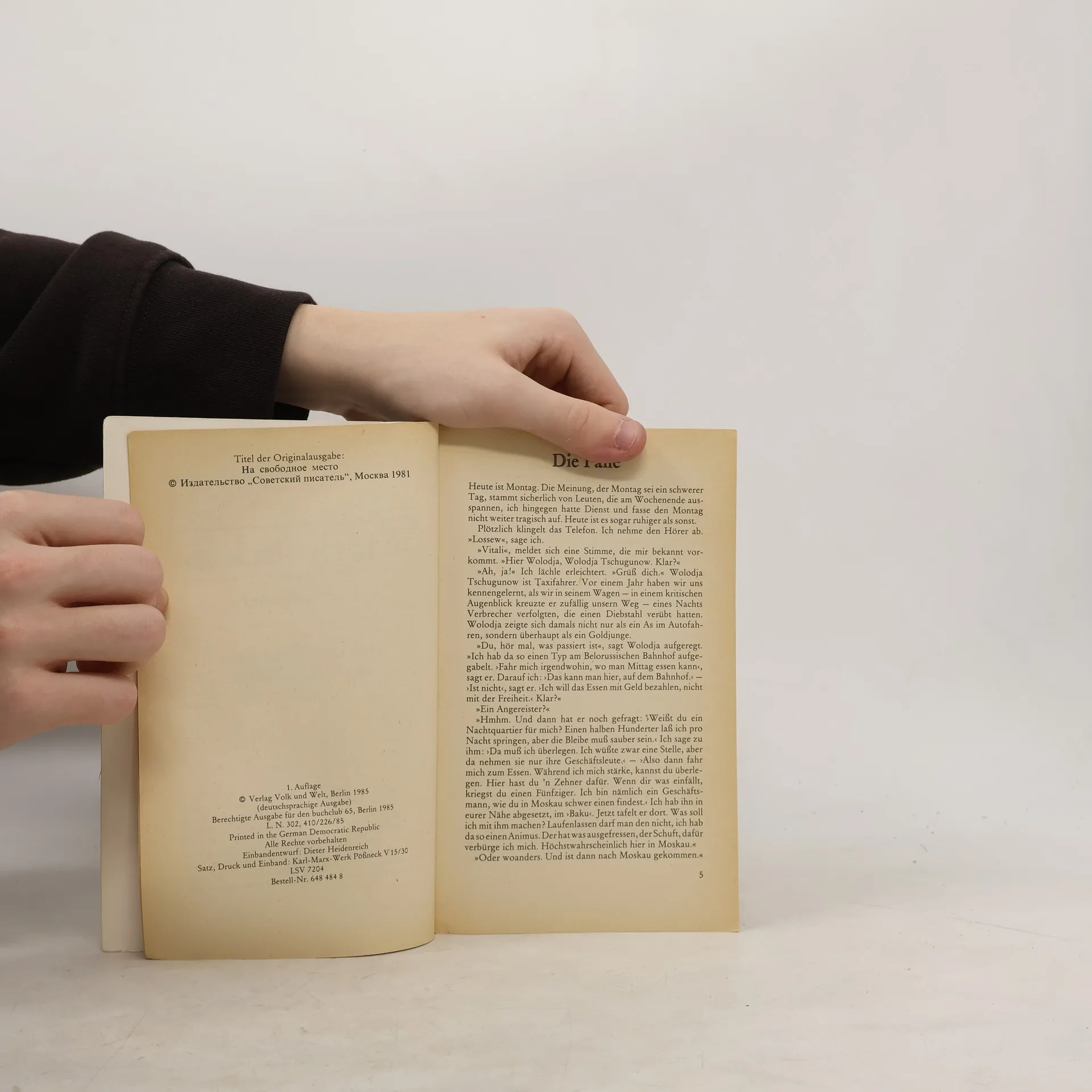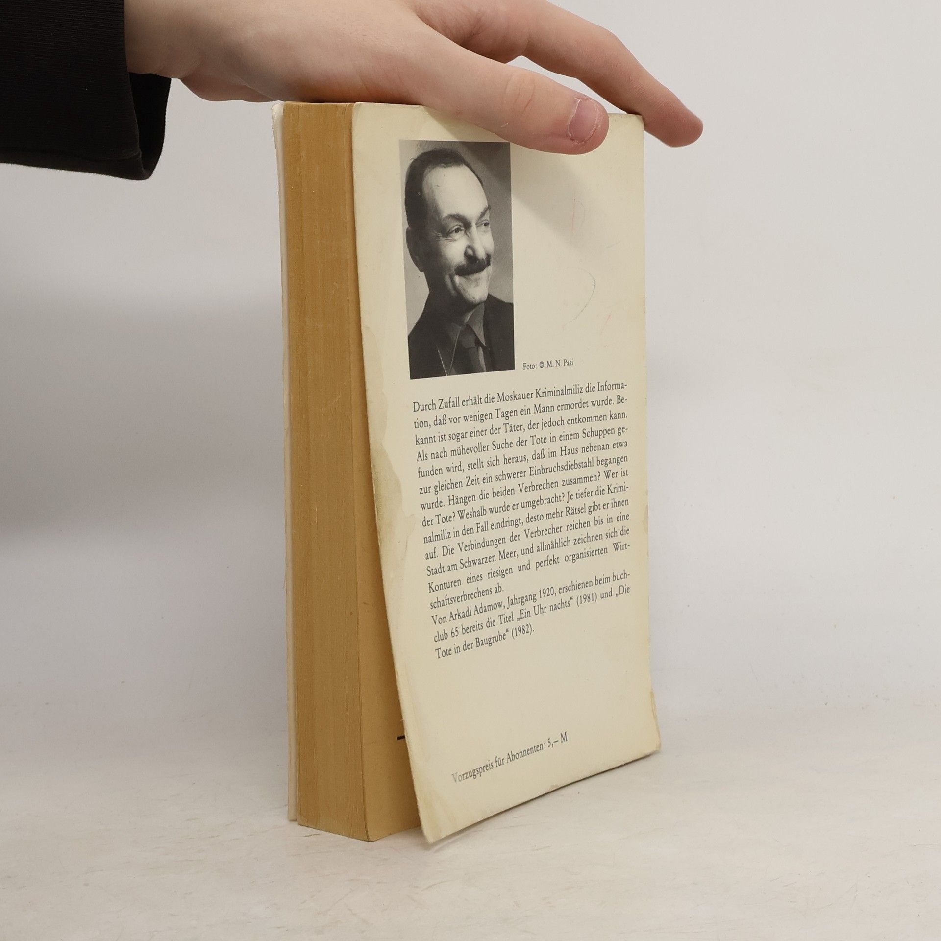 Durch Zufall erhält die Moskauer Kriminaljustiz die Information, dass vor wenigen Tagen ein Mann ermordet wurde. Bekannt ist sogar einer der Täter, der jedoch entkommen kann. Als nach mühevoller Suche der Tote in einem Schuppen gefunden wird, stellt sich heraus, dass im Haus nebenan etwa zur gleichen Zeit ein schwerer Einbruchsdiebstahl begangen wurde. Hängen die beiden Verbrechen zusammen? Wer ist der Tote? Weshalb wurde er umgebracht? Je tiefer die Kriminalmiliz in den Fall eindringt, desto mehr Rätsel gibt er ihnen auf. Die Verbindungen der Verbrecher reichen bis in eine Stadt am Schwarzen Meer, und allmählich zeichnen sich die Konturen eines riesigen und perfekt organisierten Wirtschaftsverbrechens ab.Arkadi Adamow (Jahrgang 1920) ist der Begründer des sowjetischen Kriminalromans. DDR-Publikation.