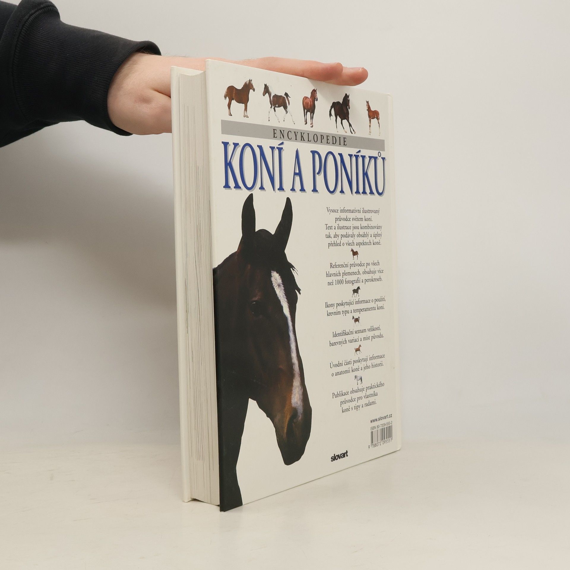 Kniha o koních a ponících je pohledem do fascinujícího světa koní. Přehledně informuje o více než 200 plemenech koní, jejich využití v minulosti a současnosti i všech problémech v jejich chovu. Vlastníkům a chovatelům encyklopedie poskytne informace, které budou potřebovat při péči o tato neobyčejně krásná zvířata. Ale nejen jim je určena tato kniha, která obsahuje přes 1000 fotografií a perokreseb ze světa koní.