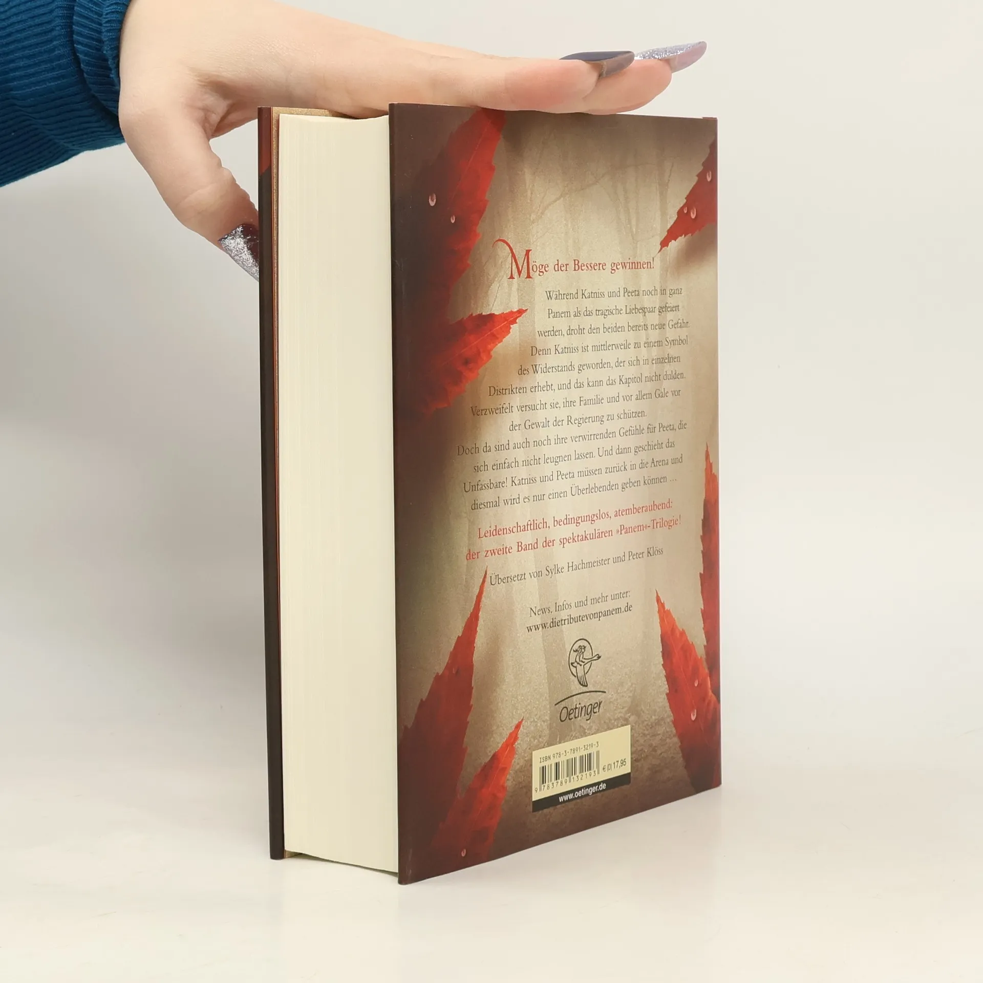Für wen wird Katniss sich entscheiden? Grandios: der zweite Teil der „Panem“-Trilogie Seitdem Katniss und Peeta sich geweigert haben, einander in der Arena zu töten, werden sie vom Kapitol als Liebespaar durch das ganze Land geschickt. Doch da ist auch noch Gale, der Jugendfreund von Katniss. Und mit einem Mal weiß sie nicht mehr, was sie wirklich fühlt – oder fühlen darf. Als immer mehr Menschen in ihr und Peeta ein Symbol des Widerstands sehen, geraten sie alle in große Gefahr. Und Katniss muss sich entscheiden – zwischen Peeta und Gale, zwischen Freiheit und Sicherheit, zwischen Leben und Tod … Die Fortsetzung des Bestsellers „Die Tribute von Panem – Tödliche Spiele“. Vielfach ausgezeichnet und auf allen US-Bestsellerlisten. „Überwältigend!“ (Stephenie Meyer) Auch als www. DieTributevonPanem. de