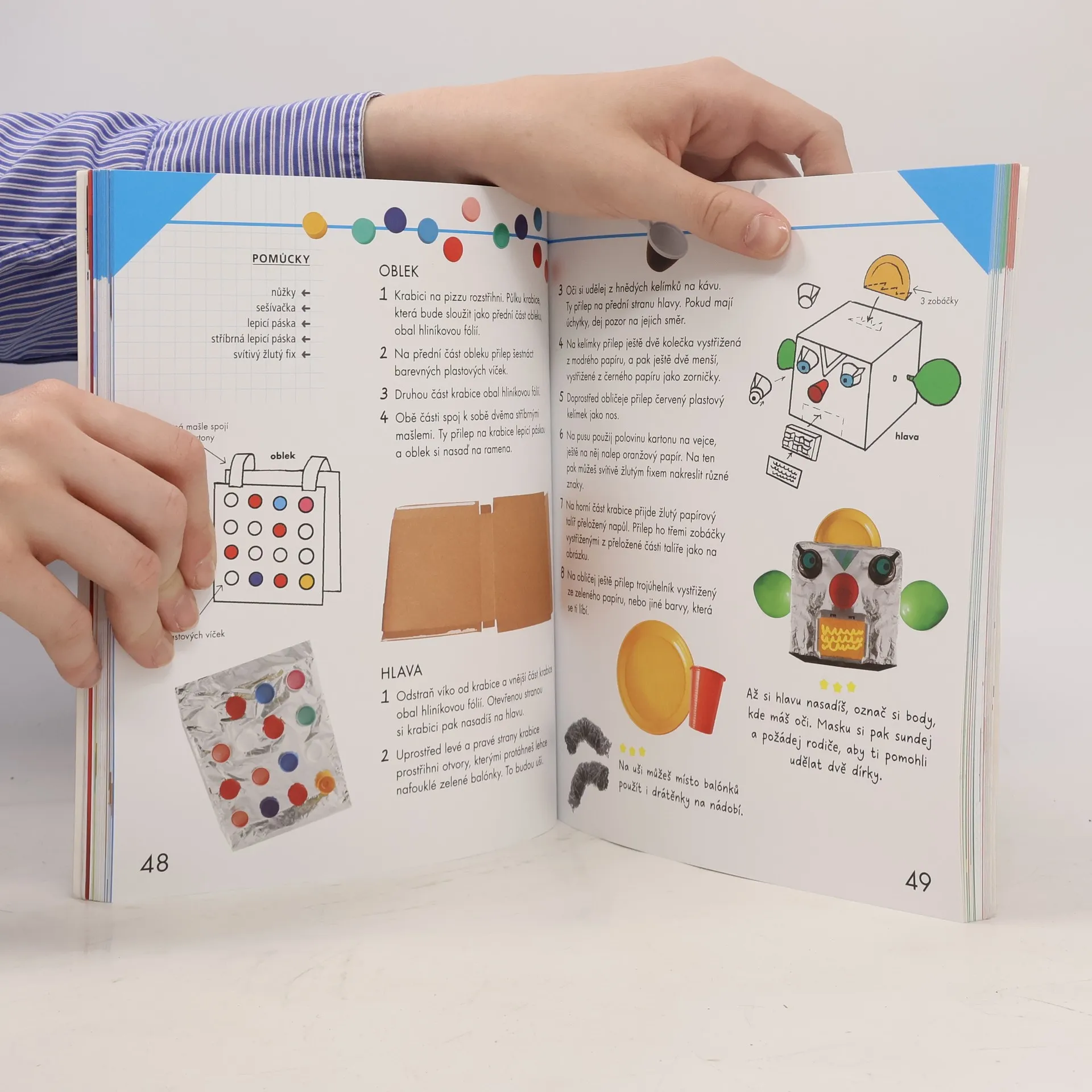 Děti masky a převleky milují! Inspirujte se a vytvořte ty nejlepší! Máme pro vás knihu plnou nápadů na výrobu originálních masek a doplňků vhodných na karneval, oslavu nebo jen zpestření obyčejného dne. Děti totiž masky a převleky milují! Holčičky se mohou stát princeznou, vílou, baletkou nebo dokonce pizzou, kluci zas pirátem, rytířem, drakem či robotem. A to rychle, za málo peněz, a navíc ekologicky! Vystačíte si s běžně dostupnými recyklovatelnými materiály a trochou šikovnosti. Pro ty, kteří nemají na výrobu kostýmu příliš času, máme specialitu – kostýmy za minutku! Každý postup je popsaný krok za krokem a doplněný obrázky a fotografiemi. Součástí návodů jsou i tipy na líčení, které masku skvěle doplní. Tak se do toho pusťte, zábava může začít!