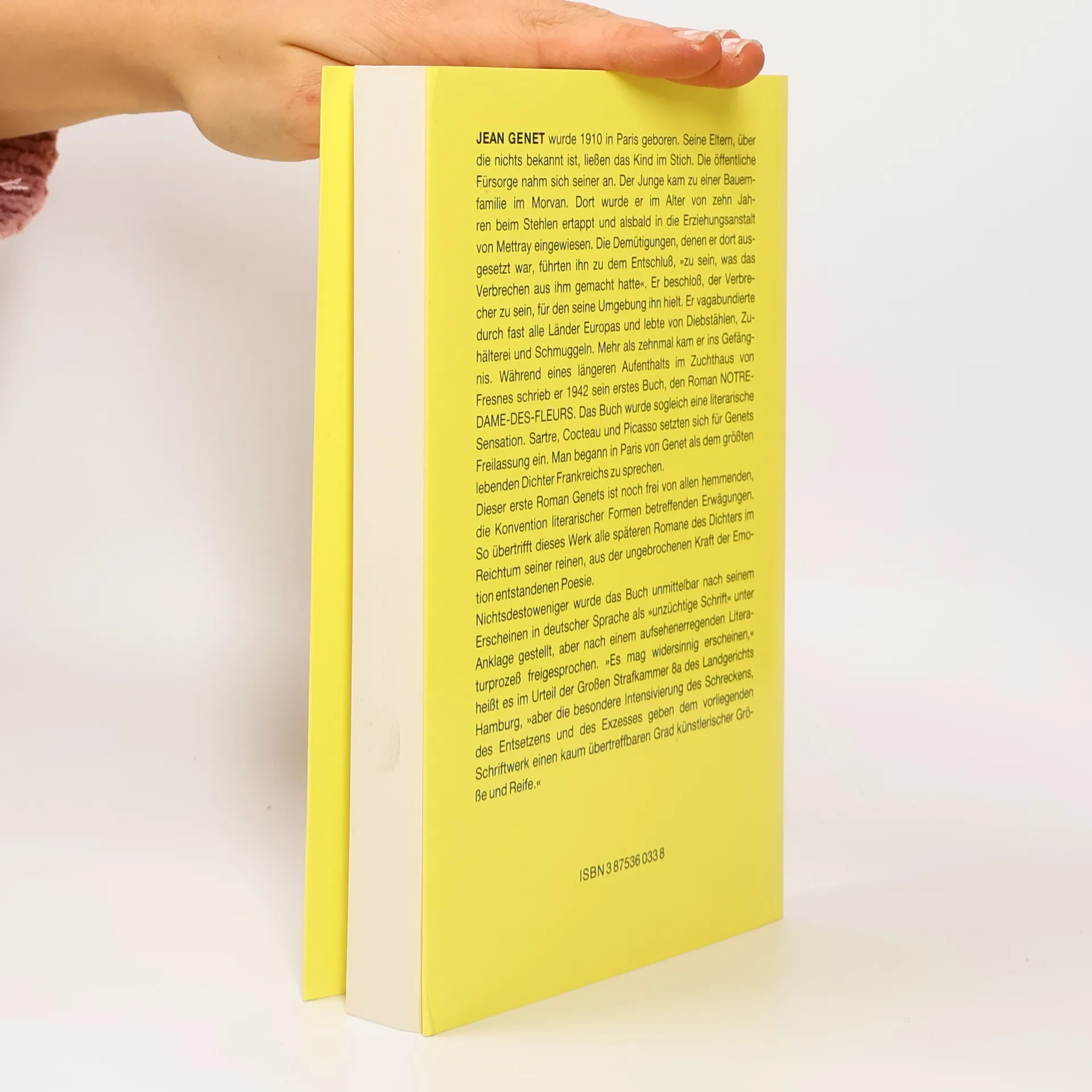 „Der Sprengkörper Genet. Das Buch ist hier, in dieser Wohnung, fürchterlich, obszön, unpublizierbar, unvermeidbar. Man weiß nicht, wie es nehmen. Es ist. Es wird sein. Wird es die Welt zwingen, so zu werden, dass es in ihr erscheinen kann? Für mich bedeutet es das große Ereignis der Epoche. Es bringt mich in Aufruhr, es widert mich an und es verzaubert mich. Es wirft unzählige Fragen auf. Es kommt daher auf den leichten Füßen des Skandals, mit seinen Samtfüßen ... Ich habe Notre-Dame-des-Fleurs Zeile für Zeile wiedergelesen ... Das Gedicht "Le Condamné à Mort" reihte sich noch zu anderen Gedichten. Hier aber haben wir die Einsamkeit und das Funkeln eines dunklen Sternes vor uns.“ Jean Cocteau, Tagebucheintrag vom 22. Februar 1943 Dank der Vermittlung von Jean Cocteau wurde die Erstausgabe des ersten Romans von Jean Genet 1944 in Frankreich veröffentlicht. In Deutschland erschien der Roman erstmals im Jahr 1960 und löste sogleich eine Anklage wegen Verbreitung unzüchtiger Schriften aus. Der sich daraus ergebende Prozess am Landgericht Hamburg endete im Jahr 1962 mit einem Freispruch des Buches und bewirkte die weitgehende Liberalisierung der literarischen Zensur in Deutschland.
