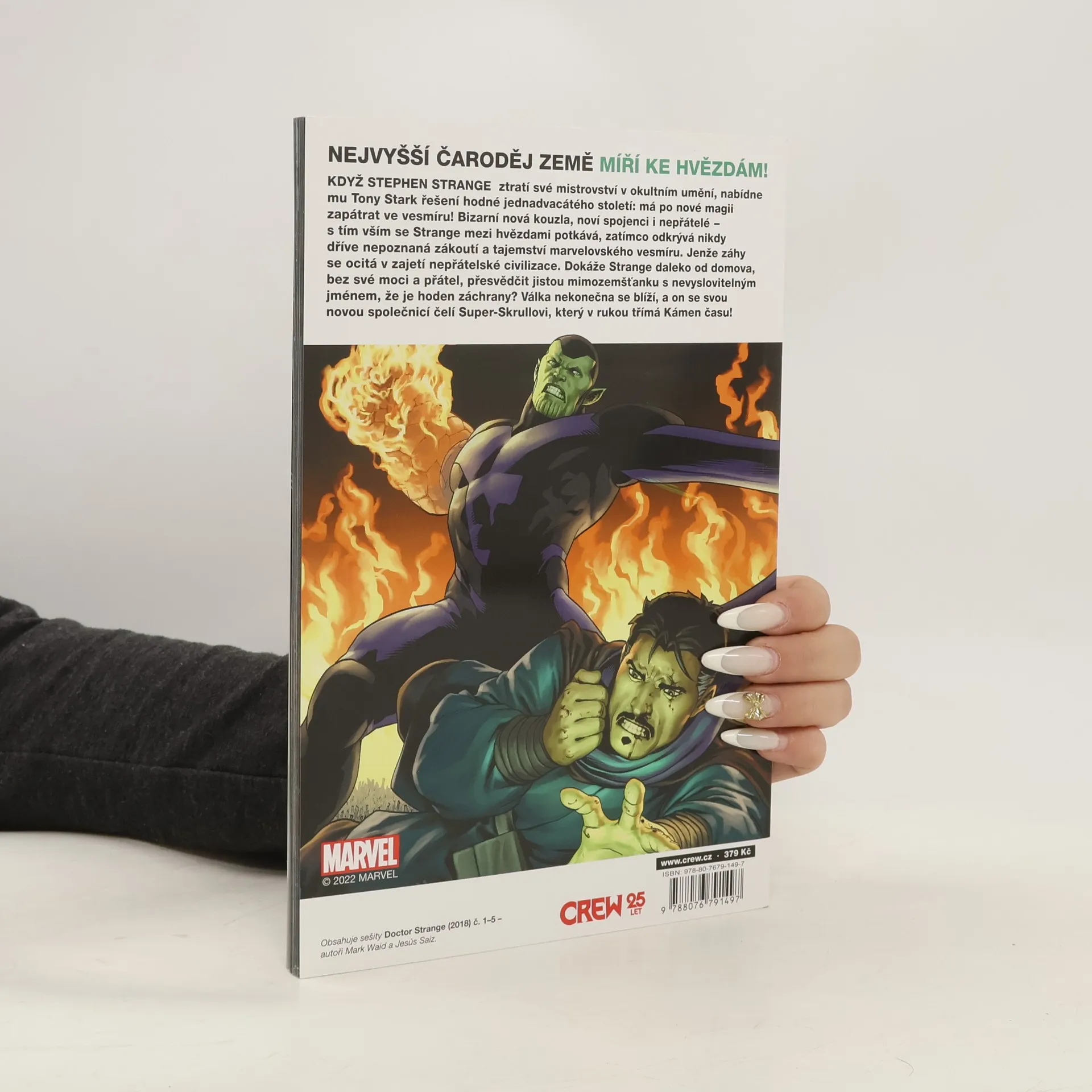 NEJVYŠŠÍ ČARODĚJ ZEMĚ MÍŘÍ KE HVĚZDÁM! KDYŽ STEPHEN STRANGE ztratí své mistrovství v okultním umění, nabídne mu Tony Stark řešení hodné jednadvacátého století: má po nové magii zapátrat ve vesmíru! Bizarní nová kouzla, noví spojenci i nepřátelé – s tím vším se Strange mezi hvězdami potkává, zatímco odkrývá nikdy dříve nepoznaná zákoutí a tajemství marvelovského vesmíru. Jenže záhy se ocitá v zajetí nepřátelské civilizace. Dokáže Strange daleko od domova, bez své moci a přátel, přesvědčit jistou mimozemšťanku s nevyslovitelným jménem, že je hoden záchrany? Válka nekonečna se blíží, a on se svou novou společnicí čelí Super-Skrullovi, který v rukou třímá Kámen času!