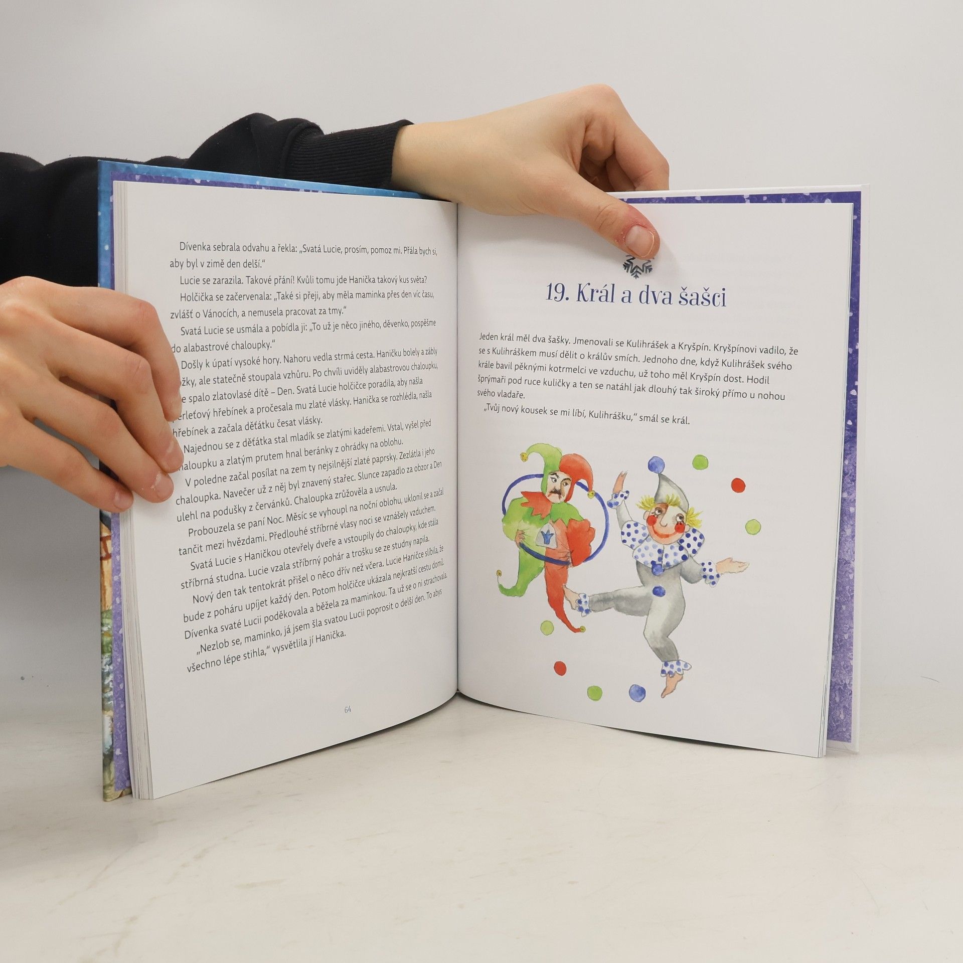 Najděte si v rušném předvánočním čase chvilku pro sebe a zpříjemněte si čekání na Ježíška společným čtením. Dvacet čtyři pohádek s kouzelnou atmosférou potěší děti i dospělé. V pohádkách potkáte Lucii, Barborku či Mikuláše. Poznáte princeznu Drdolínu nebo krejčíka Nitku. A když budete dobře poslouchat, možná uslyšíte zvonit vánoční rolničky…