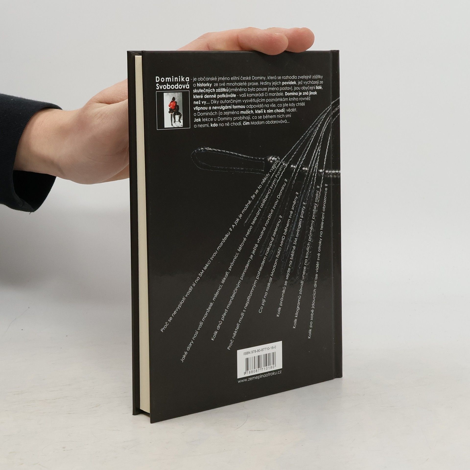 Dominka Svobodová je elitní česká Domina, která se rozhodla zveřejnit zážitky a historky ze své mnohaleté praxe. Hrdiny její knihy, vycházející ze skutečných zážitků (změněna byla jen jména postav), jsou obyčejní lidé, jež denně potkáváte – vaši kamarádi či manželé.