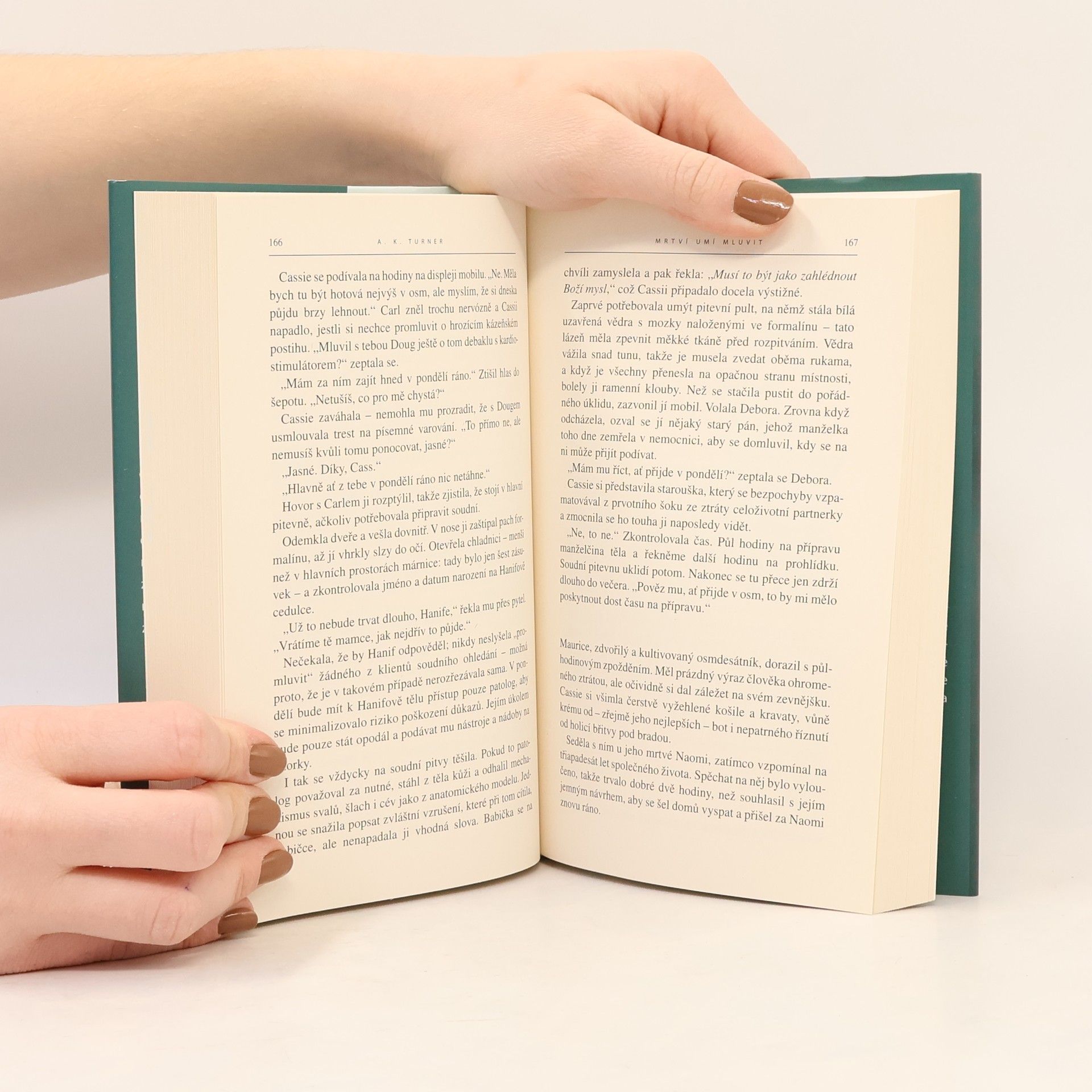 Cassie, asistentka v pitevně, už za svou praxi zažila leccos. Ovšem teď před ní na stole leží někdo, koho velmi dobře znala. Cassie je přesvědčená, že dokáže vnímat poslední myšlenky mrtvých, a teď cítí, že závěr patologa, dle kterého jde o nešťastnou náhodu, není správný. Vidí snad ve svém zármutku přeludy, nebo se její intuice nemýlí a na smrti paní E. je něco zlověstnějšího?