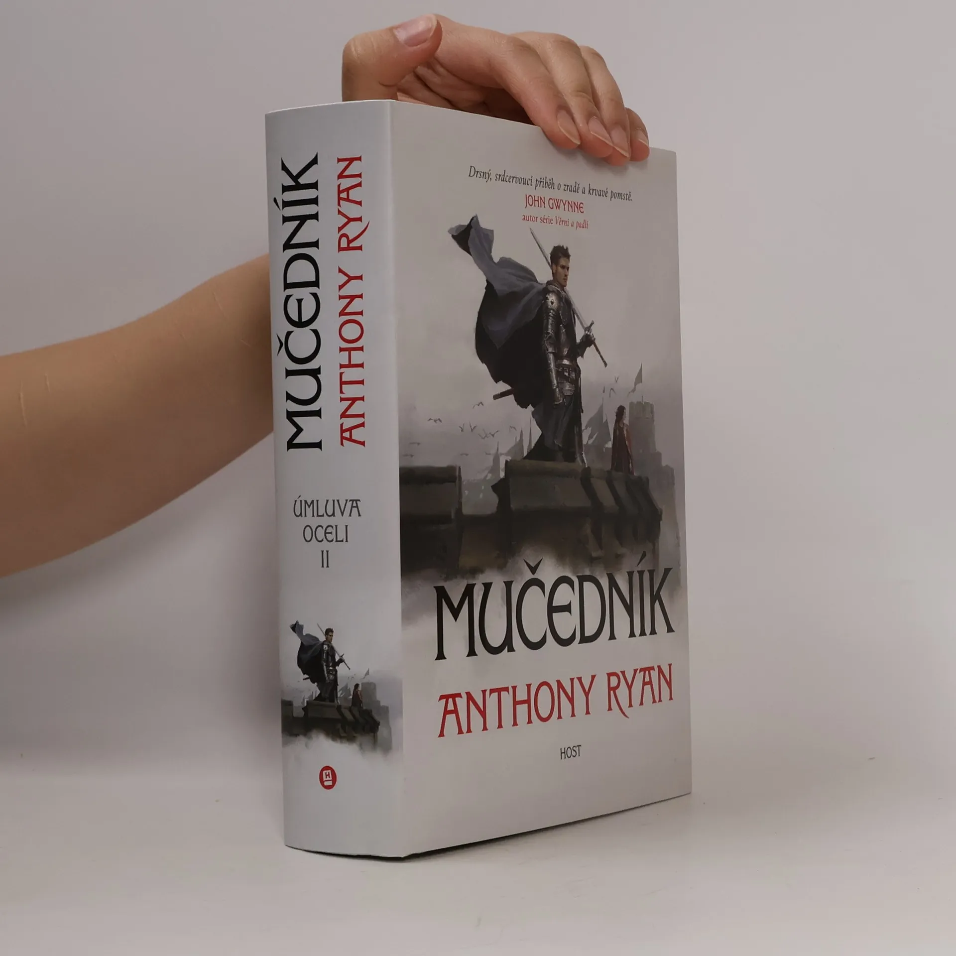 Druhý díl drsné a nelítostné trilogie Úmluva oceli od mistra epické fantasy Anthonyho Ryana Alwyn Písař se probouzí pod šumějícími korunami stromů, které ho vždycky uklidní, když má za úkol někoho zabít. Tentokrát se ale Alwyn do Shavinského hvozdu nevrací jako zbojník, nýbrž jakopísař a nepostradatelný rádce Vyvolené dámy Evadine Courlainové. A navíc se strašným bolehlavem. Strhující děj druhého dílu série Úmluva oceli provede Evadine, Alwyna a celou kompanii napříč Albermaine až na jih do Alundie. Mají tam skutečně jen zpacifikovat vzpurnou šlechtu a ochránit pravověrné poutníky, anebo je tam král poslal na smrt, aby se nadobro zbavil nepohodlné mučednice, která odmítá zemřít? Při velkolepých bitvách musí Alwyn dokázat, že je nejen poslušným vojákem, ale také dobrým velitelem a stratégem. Nebezpečné balancování mezi korunou a Úmluvou nakonec Alwyna zavede ještě dál na jih do neprobádané Caerithské pustiny, kde poodhalí děsivé tajemství první Pohromy a záhadné knihy, kterou dostal od Pytlové vědmy.