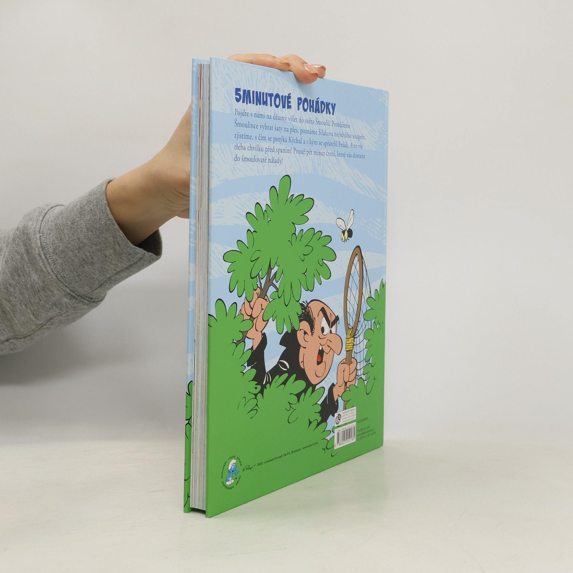 Spousta příběhů, po kterých se vám bude šmoulovatě usínat! Pojďte s námi na úžasný výlet do světa Šmoulů! Pomůžeme Šmoulince vybrat krásné šaty, poznáme Silákova největšího soupeře, zjistíme, s čím se potýká Kýchal a s kým se spřátelil Fešák. A to vše třeba chvilku před spaním! Prostě pět minut čtení, které vás dostane do šmoulovaté nálady!