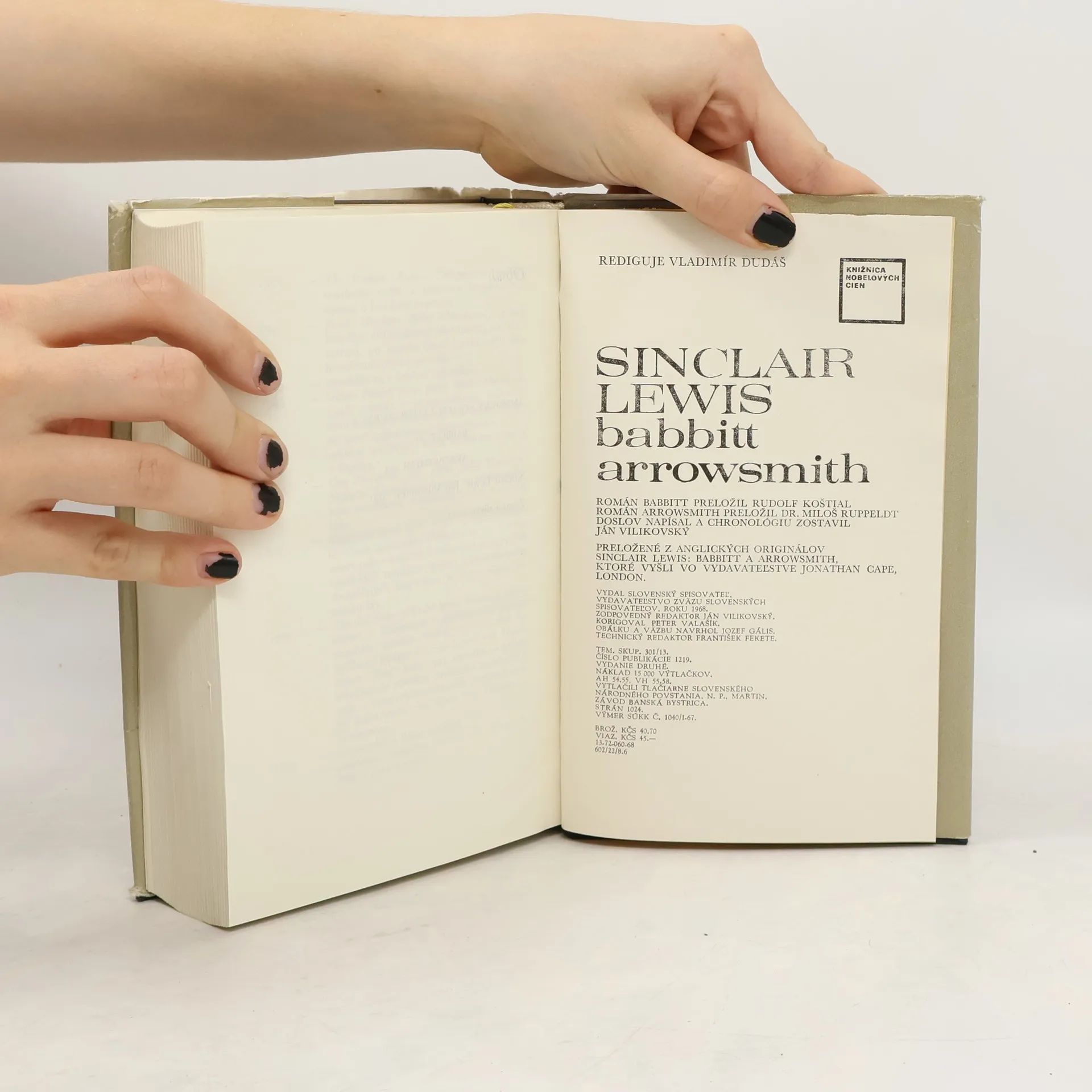 "Babbitt, hrdina Lewisovho románu, sa stal celosvetovo známym literárnym typom, stelesnením priemerného, tuctového, stádneho amerického obchodníka nášho storočia. Priniesol autorovi popularitu, slávu aj nepriateľov, ktorí ho obviňovali z nenávisti ku všetkému ozaj americkému. Arrowsmitha malautor zo svojich diel najradšej, pretože do postavy mladého lekára, ktorý sa prebíja k vede, vložil všetku svoju vieru v prostého amerického človeka. Sinclair Lewis patril ku generácii, ktorá - obrazne povedané - otvorila americkej literatúre okno do sveta. Všeobecne bol vo svete považovaný za intelektuálneho reprezentanta Ameriky, o čom svedčí aj udelenie Nobelovej ceny v roku 1930, ktorá v jeho osobe bola vyznamenaním celému písomníctvu najmladšieho kontinentu." (z anotácie na prebale) Obsahuje aj prejav S. Lewisa pri preberaní Nobelovej ceny za literatúru s názvom "Americký strach z literatúry".