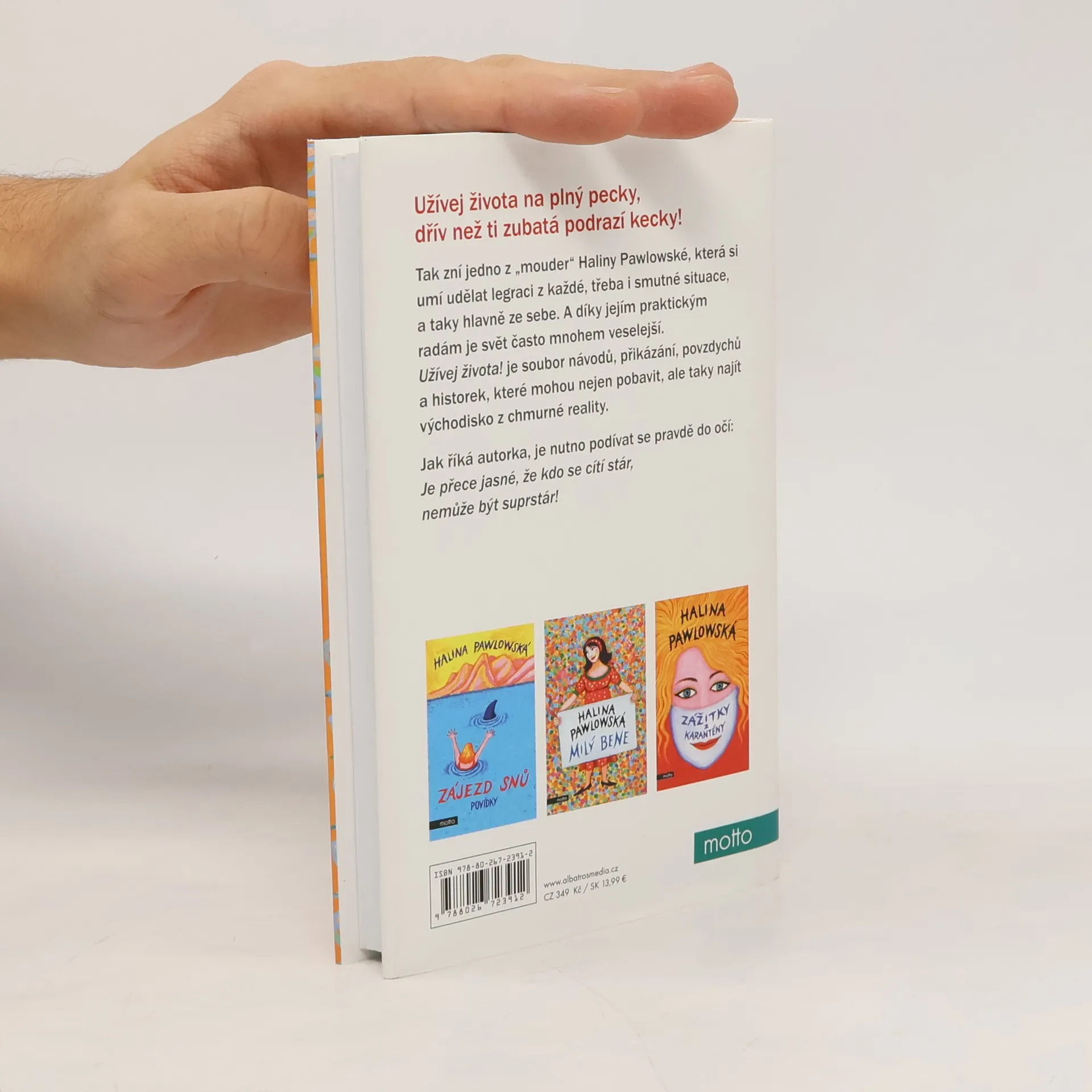 Užívej života na plný pecky, dřív než ti zubatá podrazí kecky!Tak zní jedno z pořekadel Haliny Pawlowské, která si umí udělat legraci z každé, třeba i smutné situace, a taky hlavně ze sebe. A díky jejím praktickým radám je svět často mnohem veselejší. Užívej života! je soubor návodů, přikázání, povzdychů a historek, které mohou nejen pobavit, ale taky najít východisko z chmurné reality. Jak říká autorka, je nutno podívat se pravdě do očí: Je přece jasné, že kdo je stár, nemůže být suprstár!