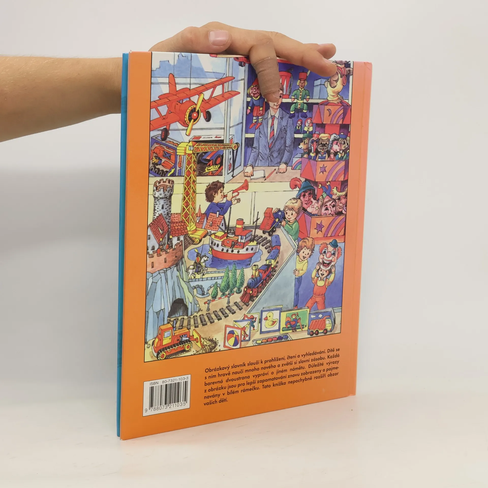 Obrázkový slovník slouží k prohlížení, čtení a vyhledávání. Dítě se s ním hravě naučí mnoho nového a zvětší si slovní zásobu. Každá barevná dvoustranna vypráví o jiném námětu. Důležité výrazy z obrázku jsou pro lepší zapamatování znovu zobrazeny a pojmenovány v bílém rámečku. Tato knížka nepochybně rozšíří obzor vašich dětí.