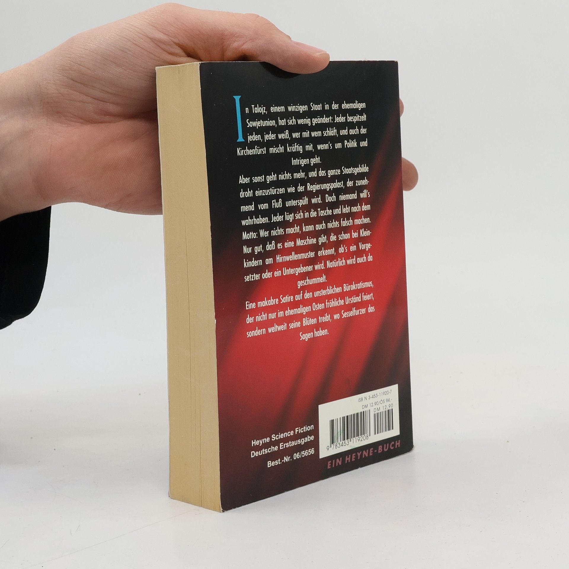 In Talojz, einem winzigen Staat in der ehemaligen Sowjetunion, hat sich wenig geändert: Jeder bespitzelt jeden, jeder weiß, wer mit wem schläft, und auch der Kirchenfürst mischt kräftig mit, wenn's um Politik und Intrigen geht. Aber sonst geht nichts mehr, und das ganze Staatsgebilde droht einzustürzen wie der Regierungspalast, der zunehmend vom Fluss unterspült wird. Doch niemand will's wahrhaben. Jeder lügt sich in die Tasche und lebt nach dem Motto: Wer nichts macht, kann auch nichts falsch machen. Nur gut, dass es eine Maschine gibt, die schon bei Kleinkindern am Hirnwellenmuster erkennt, ob's ein Vorgesetzter oder ein Untergebener wird. Natürlich wird auch da geschummelt.
